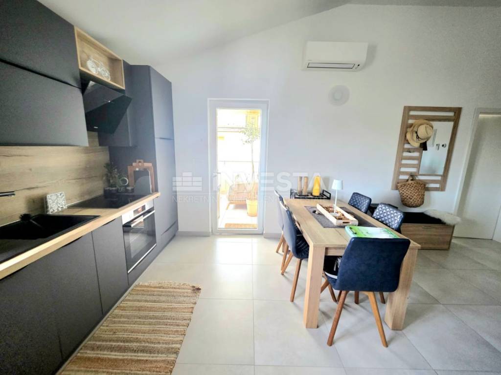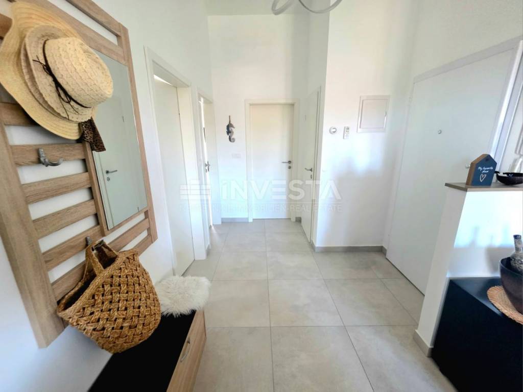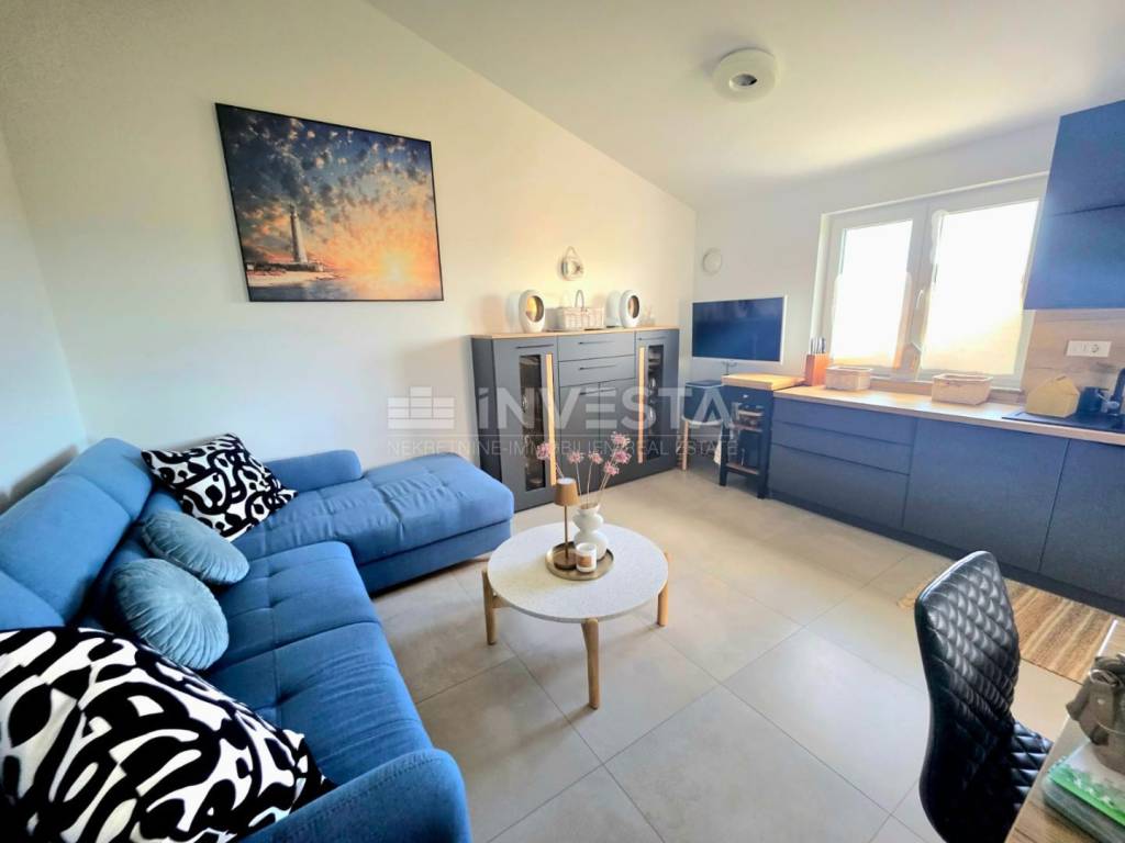 A modern apartment is offered for sale in Peroj, a peaceful coastal village near Fažana, ideal for quiet living or a relaxing seaside holiday. It is located on the second floor of a smaller residential building, with a total area of 60 m².