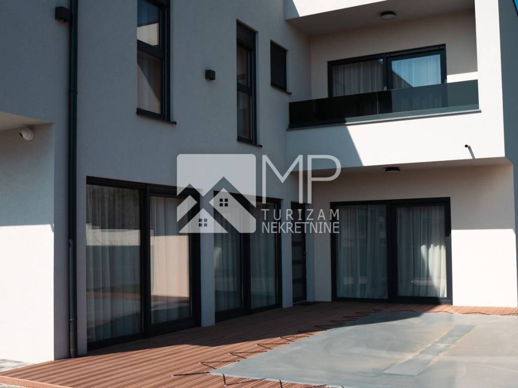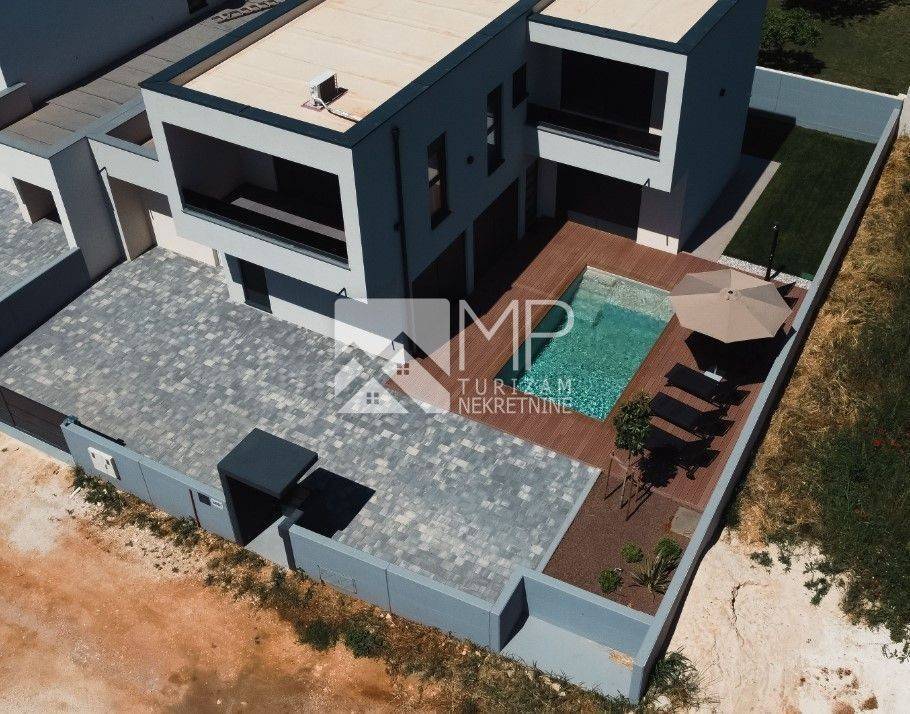 Right here, near the ACI marina Pomer, which is located in the deepest part of the Medulin Bay, this impressive newly built house with a swimming pool is located.