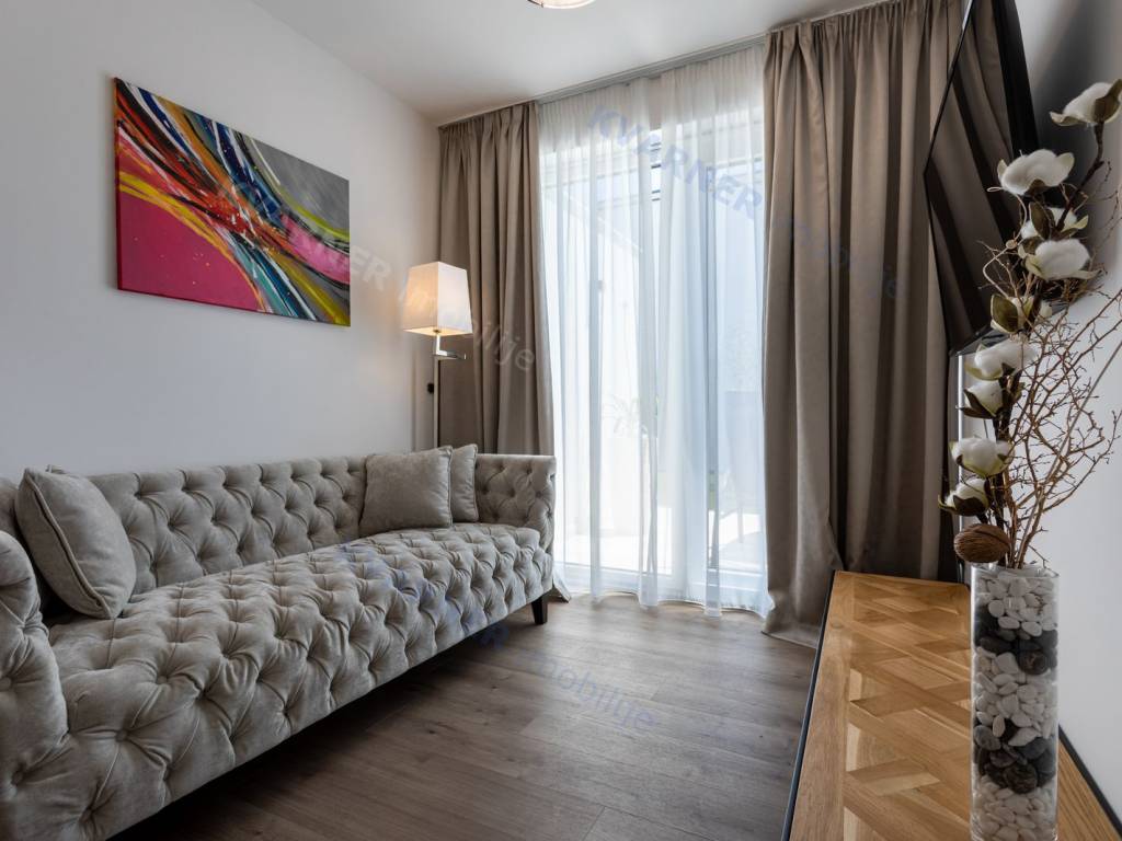 The luxuriously furnished apartments have two bedrooms, each with its own bathroom, then a terrace with jacuzzi and a pergola with solar panels. The richly landscaped garden exudes peace and luxury, and features a large sundeck, shared pool and sauna.