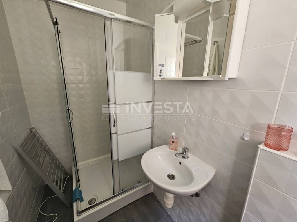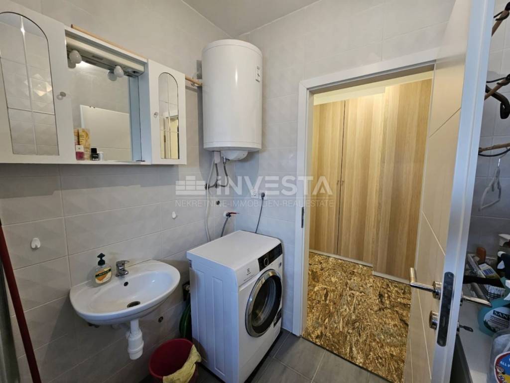 This fully furnished ground-floor apartment in a newer building has a total area of 73.95 m² (including the terrace), with a storage unit and a private parking space. The apartment is located in a peaceful area on a well-maintained street in Valbandon, just a few minutes from Fažana and Pula, and close to the sea and all amenities.