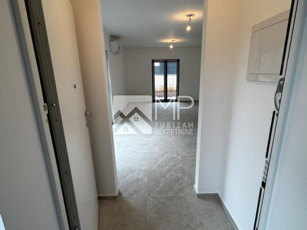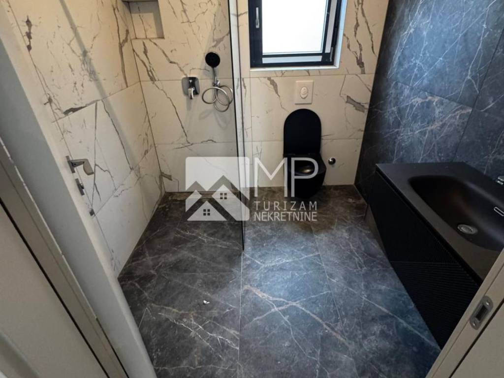 EQUIPMENT: all apartments are equipped with high-quality two-layer PVC carpentry in anthracite color with electric blinds in DB (glass walls are lift-sliding without a threshold), and mosquito nets on all windows. Heating and cooling is provided by air conditioning in the living room and bedrooms, and electric underfloor heating is provided in all rooms, except for the bedrooms. Sanitary ware and large-profile ceramics are of the highest quality, radiating elegance, while the bedrooms have laminate. The building was built using the highest quality construction system, with superior sound and thermal insulation, while the entrance to the apartment is secured by a security door. Also, they will have connections for TV and antenna in every room. There is a 35 cm parapet on the terrace and a glass fence will go on it.
