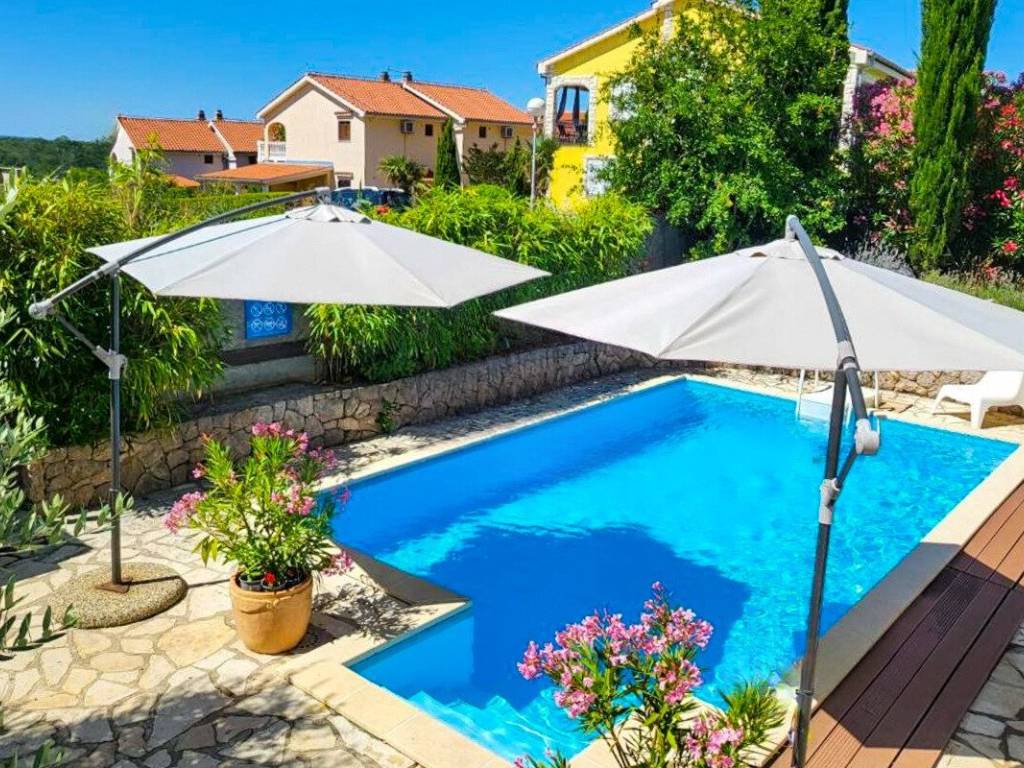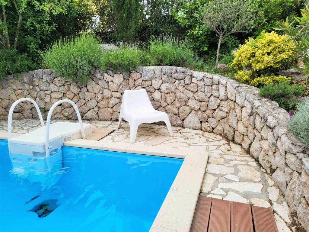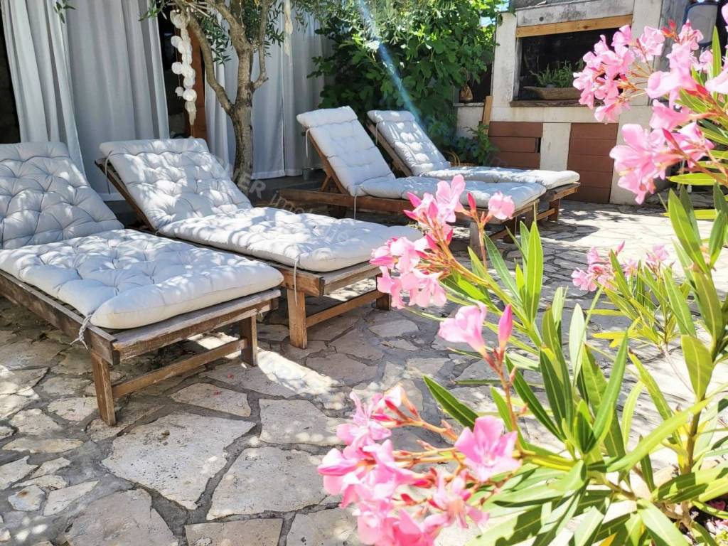Njivice - apartment with a garden and a pool for sale! A ground-floor apartment in a family house is for sale, consisting of a hallway, a living room with a kitchen and dining area, three bedrooms, two bathrooms, and a covered terrace. It is fully equipped and furnished. The apartment also includes a garden with a pool and a sunbathing area, as well as an auxiliary building - a stone house of 32 m² with a separate studio apartment and its own terrace. One parking space in the garden is included with the apartment.