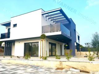 The villa is situated on a plot of 518 m², with a total living area of 144 m². The ground floor consists of a storage room, a toilet, a kitchen, a dining area, and a living room with access to the backyard. On the beautifully landscaped Mediterranean garden, there is a pool and sunbathing area, a place for relaxation, a summer kitchen, and a barbecue, as well as 2 parking spaces.