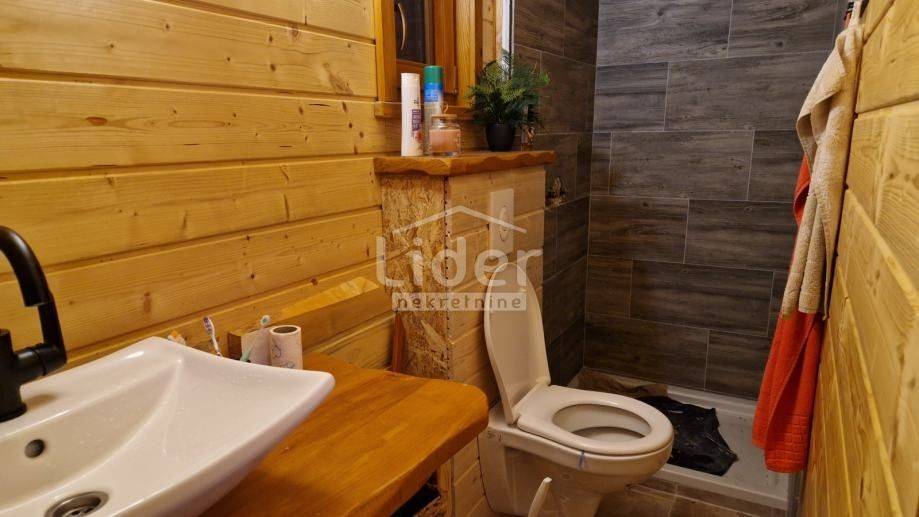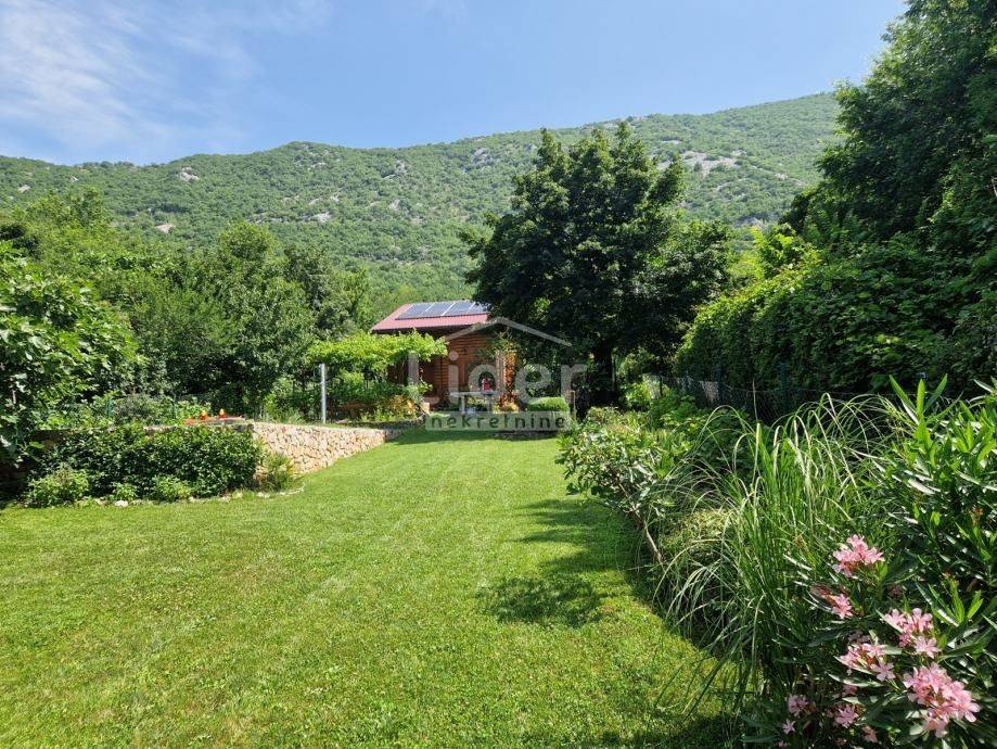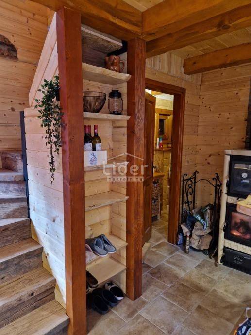 In the hinterland of Jadranovo, we are selling a detached cottage completely made of wooden logs with 2 bedrooms, living room, kitchen, storage room, bathroom. It consists of a ground floor and an upper floor measuring 68m2 on a 1000m2 plot full of amenities. Green building. Photovoltaic electricity production system, water tank... Wood heating and air conditioning. Built in 2019 with all necessary permits. The building is legalized and has the possibility of connecting to electricity and water.