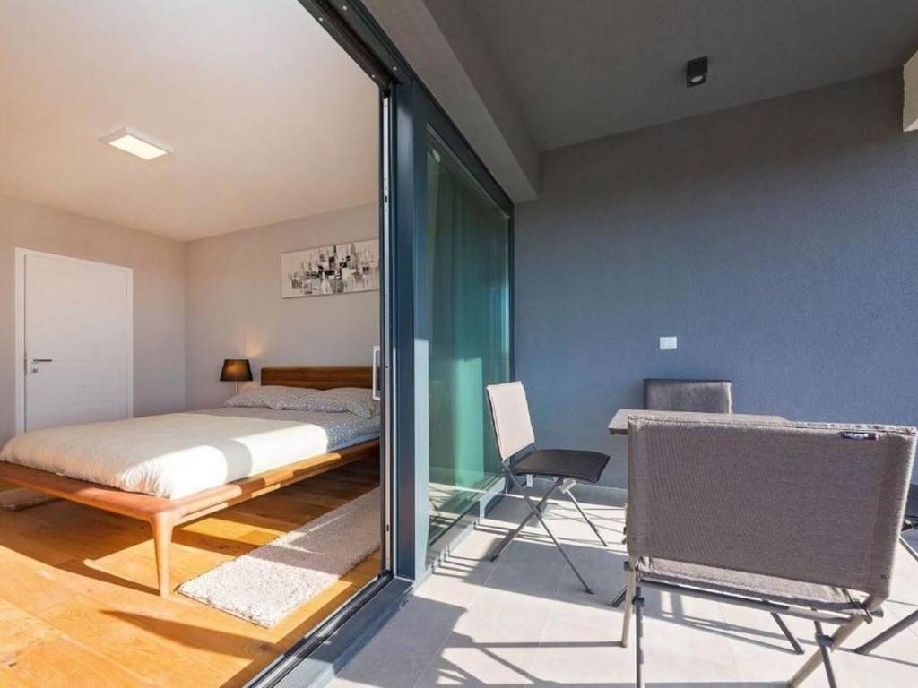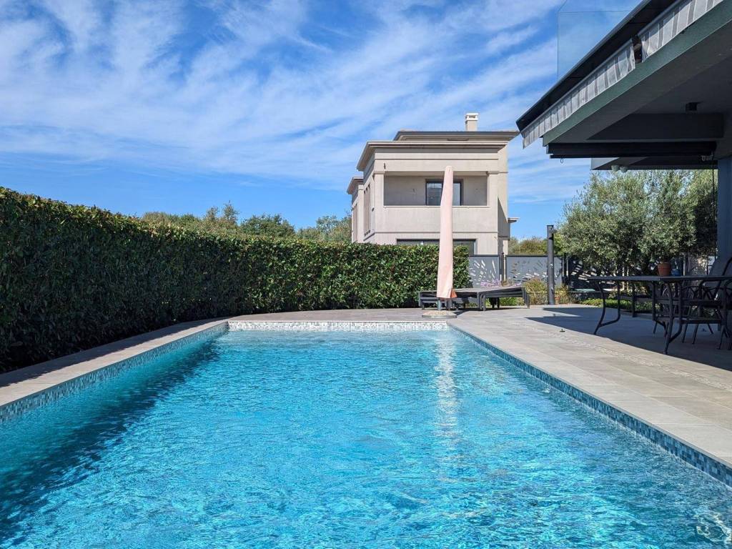 For sale is a modern house located just 500 meters from the sea and 1.4 km from the city center of Poreč. The ground floor features an open space living room with a kitchen equipped with top-quality designer furniture, offering views of the outdoor terrace and pool through glass walls. The first floor houses three bedrooms, each with its own bathroom.