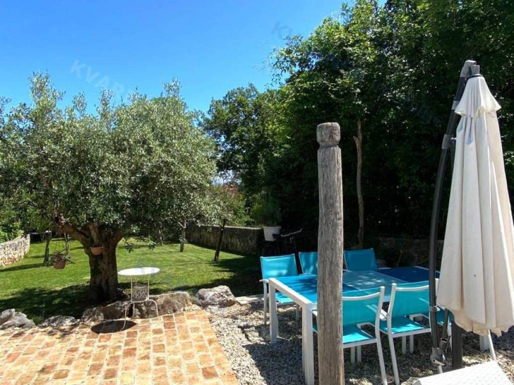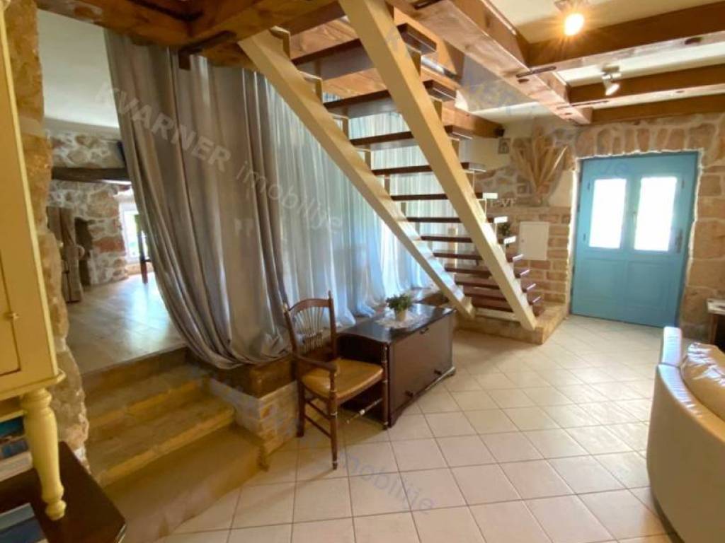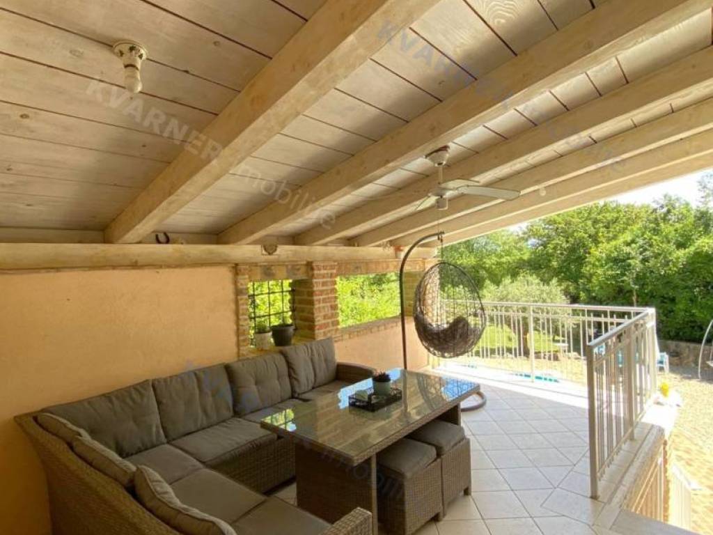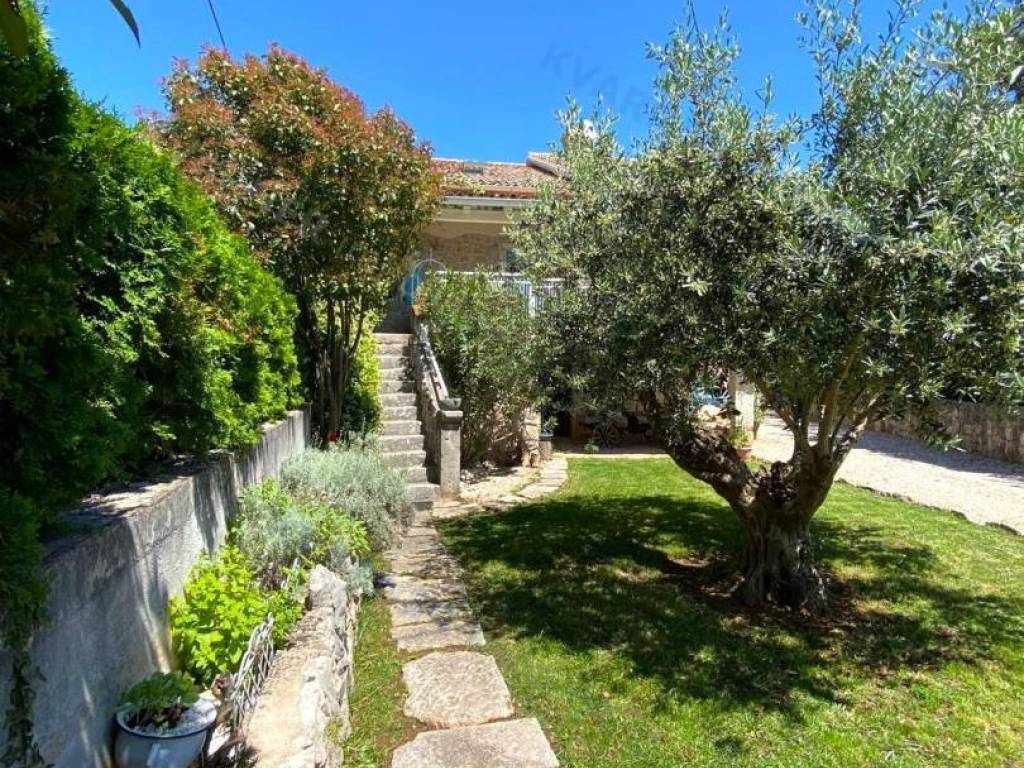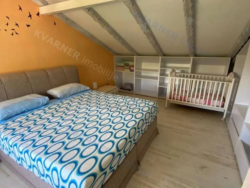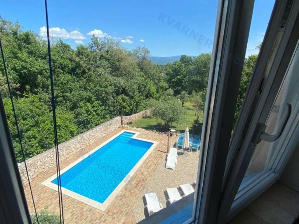 The house consists of a ground floor and an upper floor. On the ground floor, there is an original olive oil processing shower and a technical room for central heating, which can be arranged as a tavern for socializing, and a bathroom. External stairs lead to the living area, which consists of a living room with a kitchen and dining area, a bathroom, and one room (gallery) that is currently arranged as a bedroom but can also be used as an office. From the living area, there are two terraces. One terrace overlooks the pool with a sunbathing area and provides access to the garden, while the other terrace faces the other side of the garden. Internal stairs lead to the high attic where there are three bedrooms and one bathroom. The house is decorated in a rustic style and exudes a charm that many will appreciate. It is sold furnished and equipped, excluding personal items. It is equipped with a central heating system using pellets and wood, as well as air conditioning. The house has a beautiful large garden of approximately 1000 m², surrounded by greenery, with an olive grove and parking for several vehicles. The house is ideal for enjoying peace and quiet, and it can also be an excellent rental opportunity!