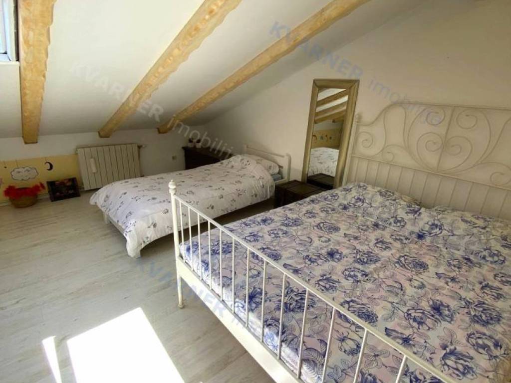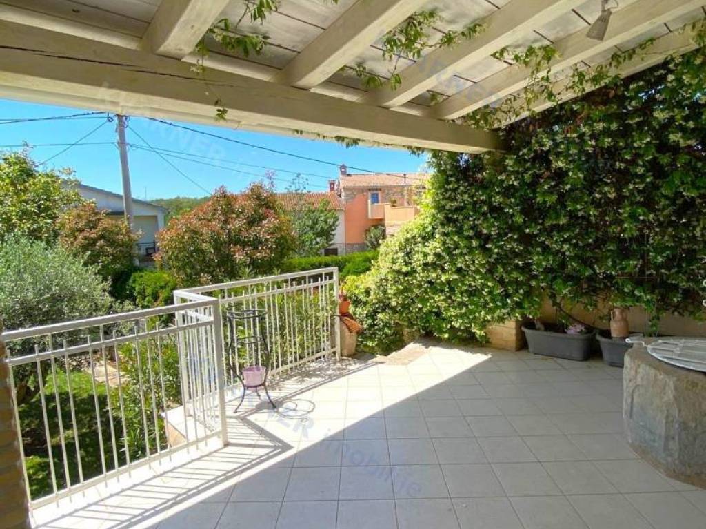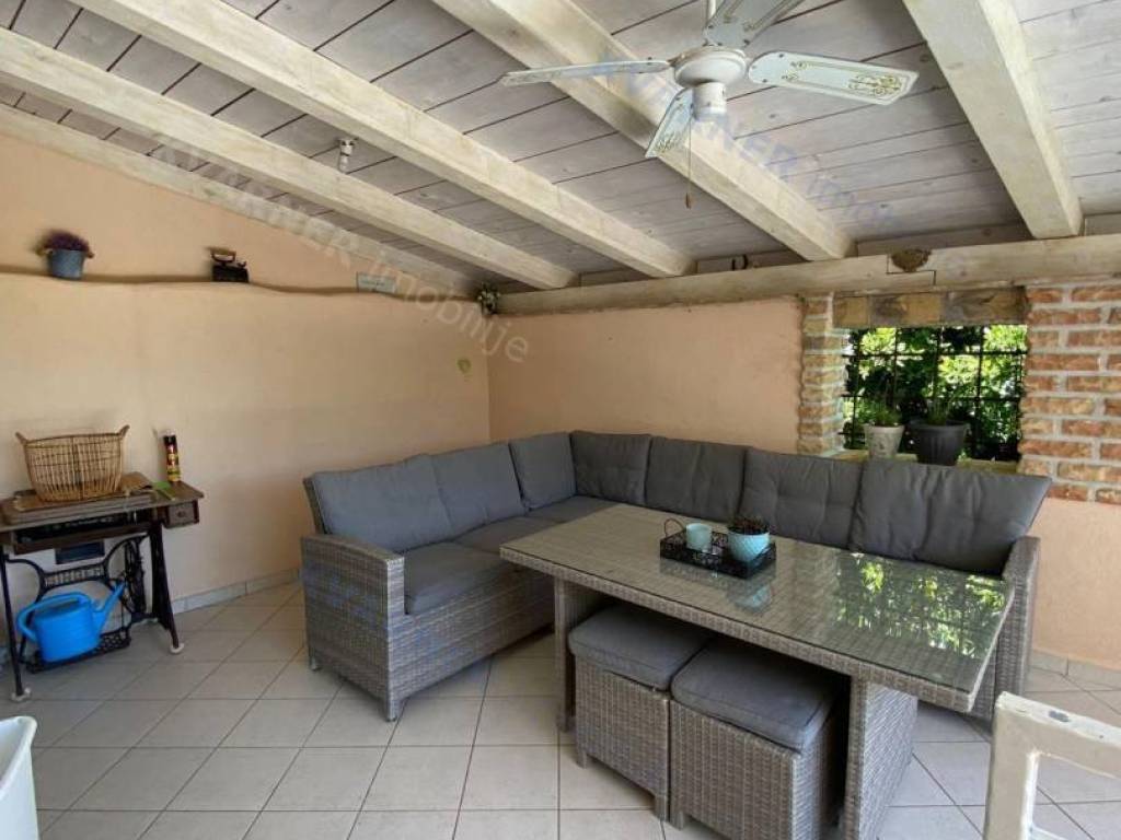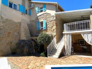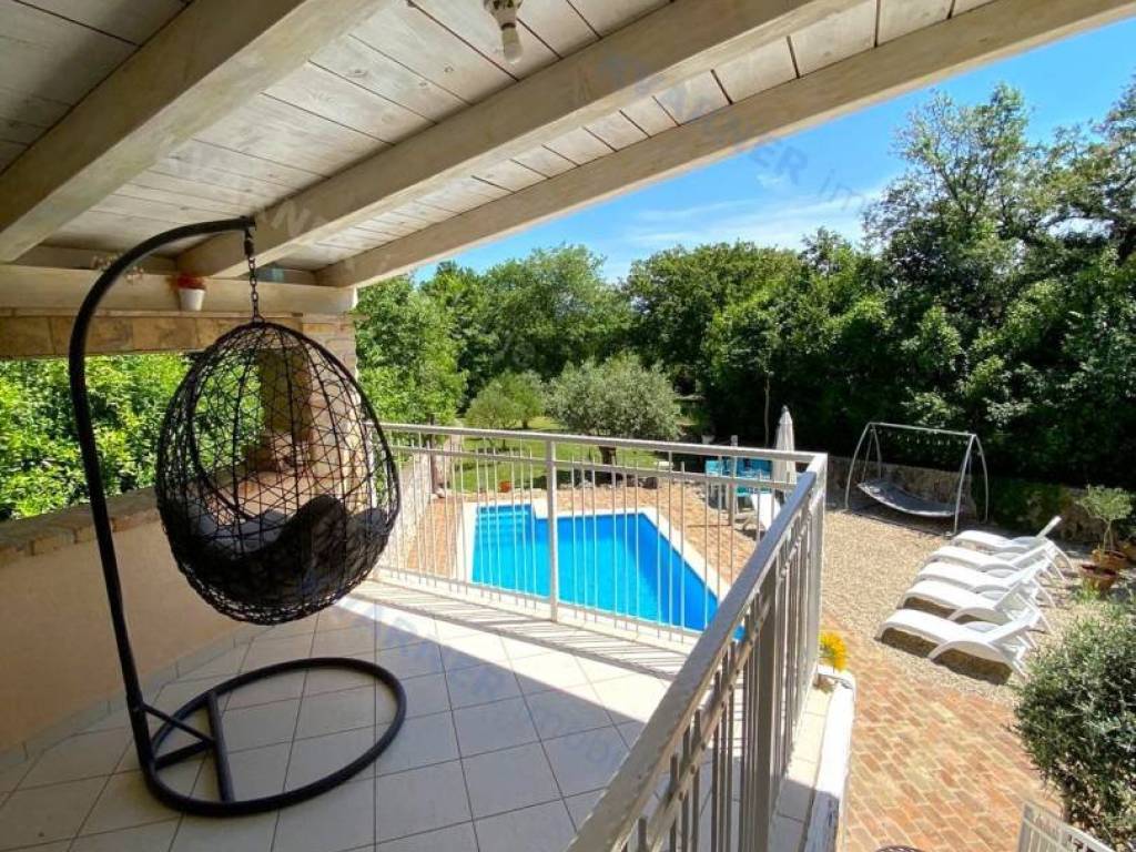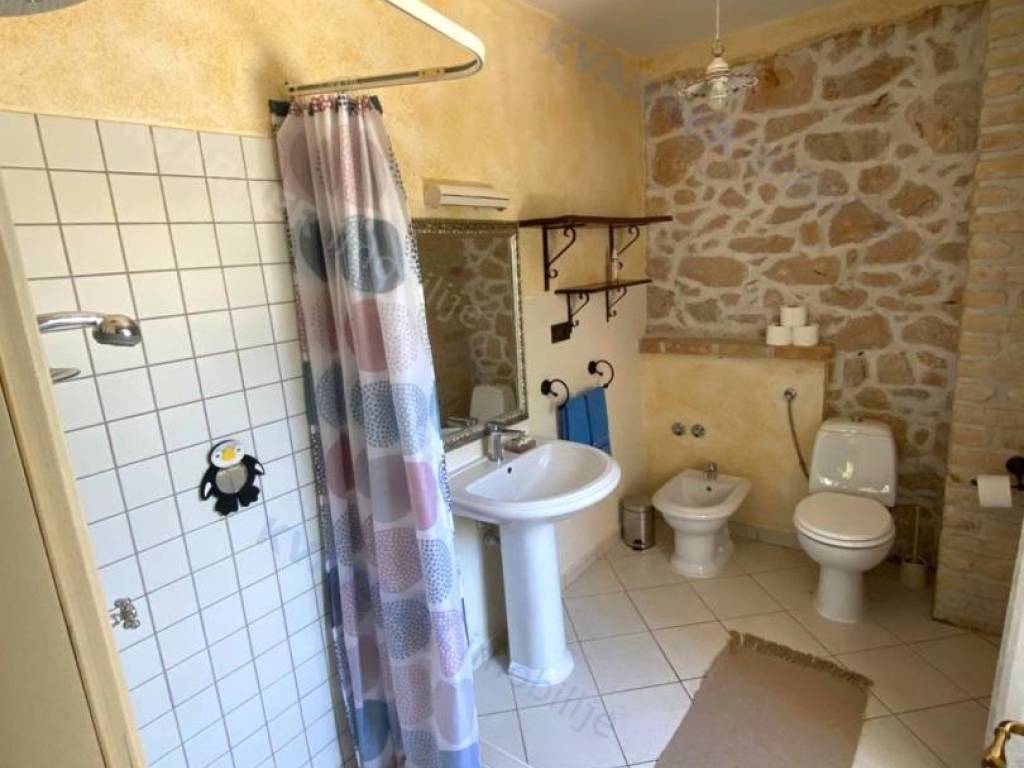 The house consists of a ground floor and an upper floor. On the ground floor, there is an original olive oil processing shower and a technical room for central heating, which can be arranged as a tavern for socializing, and a bathroom. External stairs lead to the living area, which consists of a living room with a kitchen and dining area, a bathroom, and one room (gallery) that is currently arranged as a bedroom but can also be used as an office. From the living area, there are two terraces. One terrace overlooks the pool with a sunbathing area and provides access to the garden, while the other terrace faces the other side of the garden. Internal stairs lead to the high attic where there are three bedrooms and one bathroom. The house is decorated in a rustic style and exudes a charm that many will appreciate. It is sold furnished and equipped, excluding personal items. It is equipped with a central heating system using pellets and wood, as well as air conditioning. The house has a beautiful large garden of approximately 1000 m², surrounded by greenery, with an olive grove and parking for several vehicles. The house is ideal for enjoying peace and quiet, and it can also be an excellent rental opportunity!
