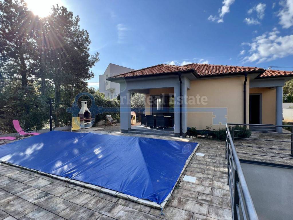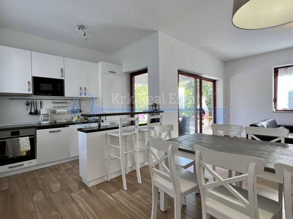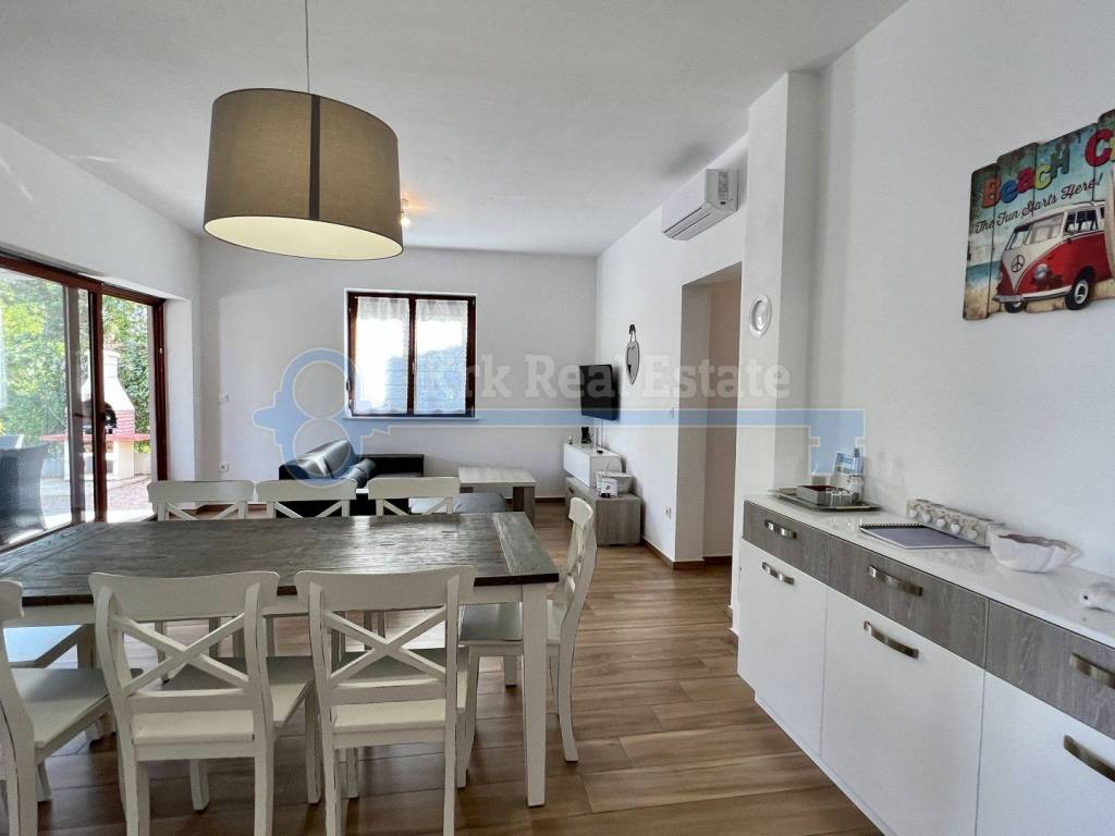 A detached house is for sale, ground floor with atic, with a living area of 86 m2. It consists of a living room, kitchen and dining room with a nice terrace, two bathrooms and three bedrooms. It has a garden area of 316 m2, where there is a swimming pool with a sunbathing area and an outdoor shower, a fireplace, a children's playground, as well as a parking space for two cars. From the parking lot, you enter the storage room, which can also be used as a locked room for bicycles and the engine room of the swimming pool located under the sun deck of the swimming pool. The house is located in a very quiet part of the island, on the edge of the construction zone and 3 km awaj from the sea.