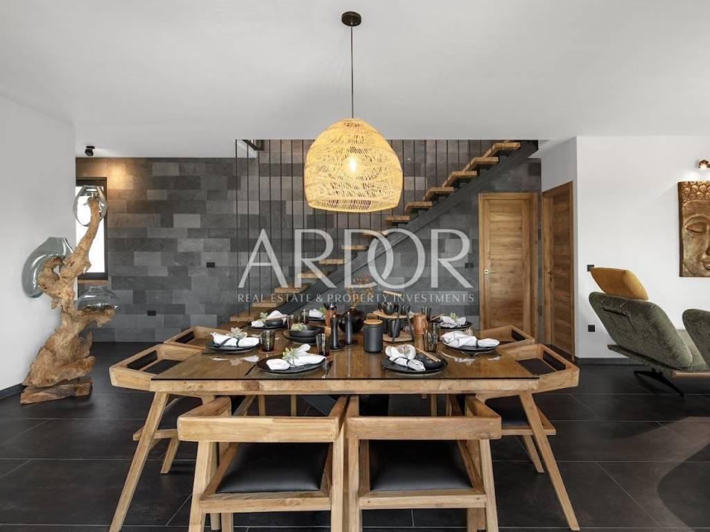 We are selling an oriental villa with an area of ​​180 m². The villa perfectly combines contemporary architecture with the harmony of nature and oriental spirituality. The use of black volcanic stone, known for its therapeutic properties, both in the design of the villa and in the pool, adds an incredible aesthetic impression to this property. In addition, the villa is equipped with handmade wooden furniture, emphasizing its sustainability and connection with nature.
