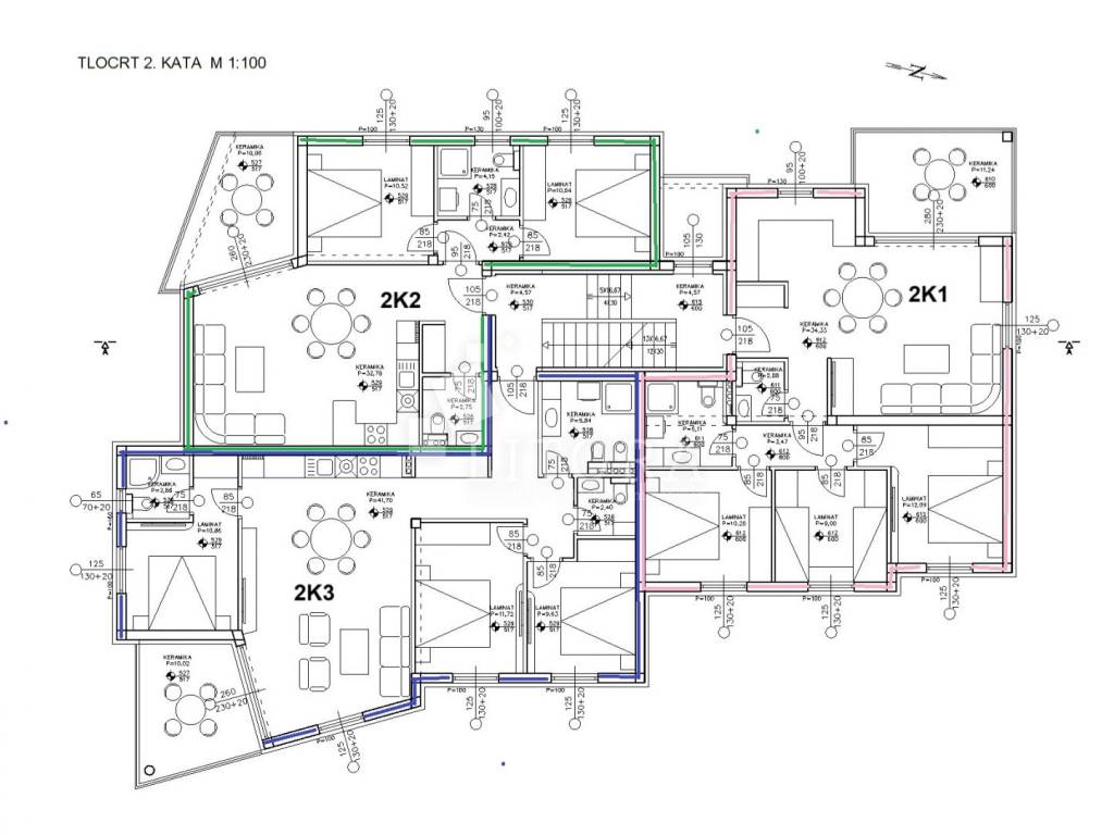 Tribunj – 650 m from Sinje More Beach, 3-room apartment with sea view. The apartment has a usable area of 100,51 m², is located on the 2nd floor of a multi-family building, faces south, and offers a sea view. The apartment features a highly comfortable layout and consists of an entrance hall, a spacious kitchen with dining area and access to a covered terrace of 10,02 m², a guest toilet, hallway, two bathroom, and three bedrooms. The apartment also includes a storage room in the basement. It is equipped with underfloor heating throughout the living area, with natural stone flooring. It features aluminum joinery with mosquito screens and electric shutters, high-quality interior carpentry, a thermal facade, and hot water supplied by a private solar panel with a 250-liter boiler. Each room has an air-conditioning unit. The apartment also includes one outdoor parking space. The building is located 1,500 m from the town center and 650 m from Sinje More Beach. The buyer does not pay real estate transfer tax, and the seller is registered for VAT.