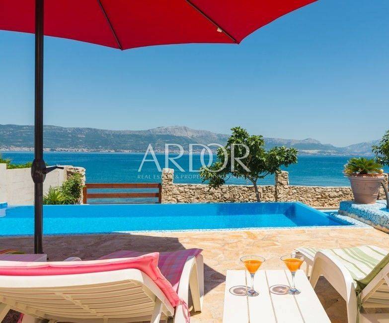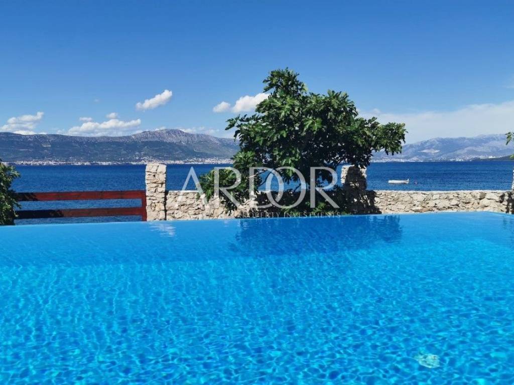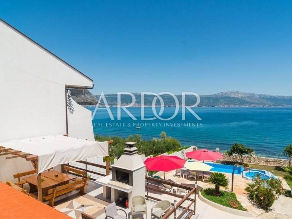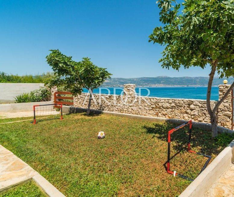 We are mediating the sale of a house in Slatine on the island of Čiovo, located in the first row by the sea, with direct access to the beach! The house, built in 1990, is located on a plot of land of almost 800 m² and is spread over three floors, with an additional low attic.