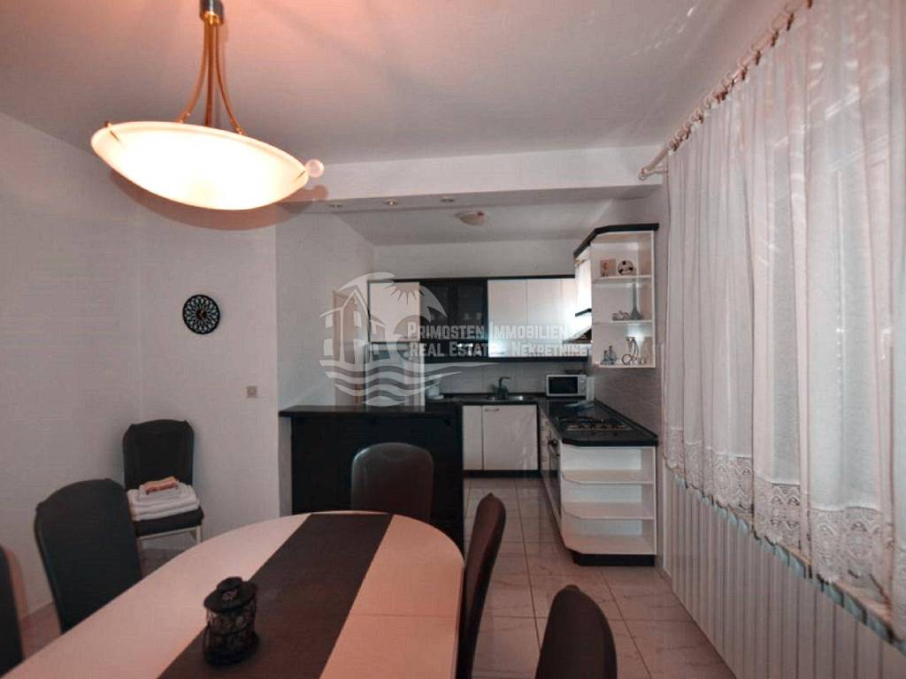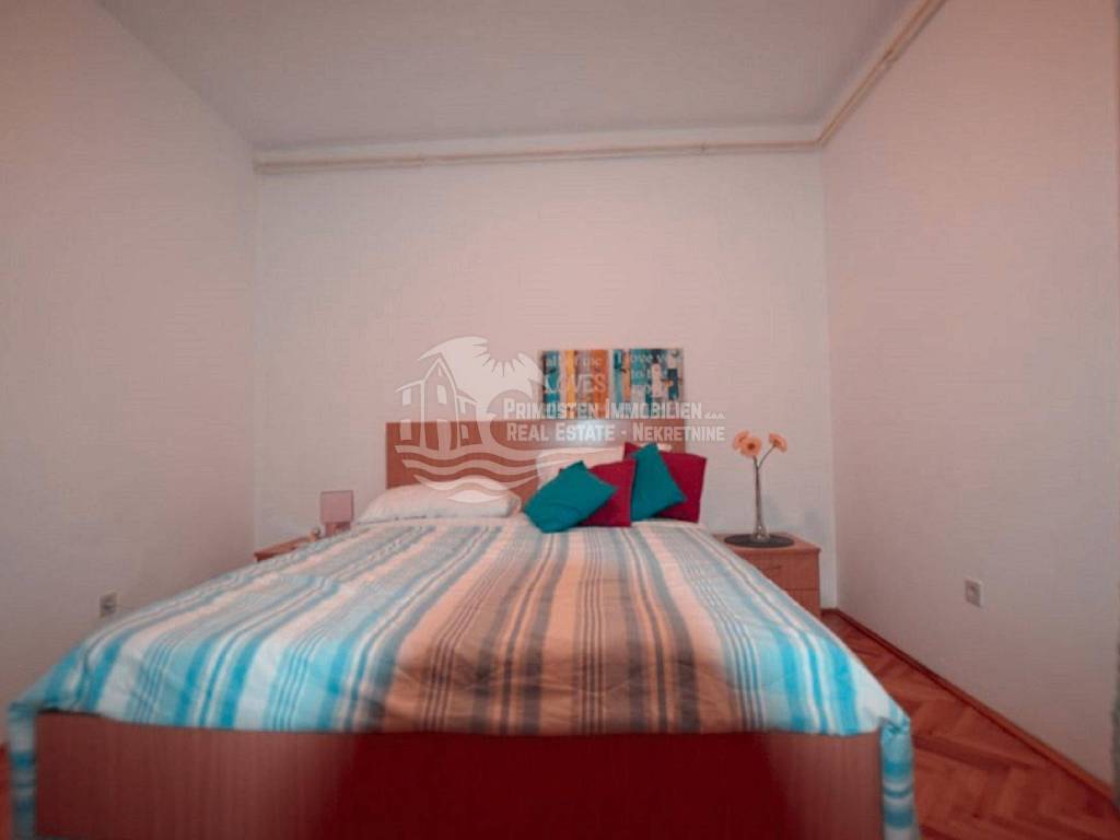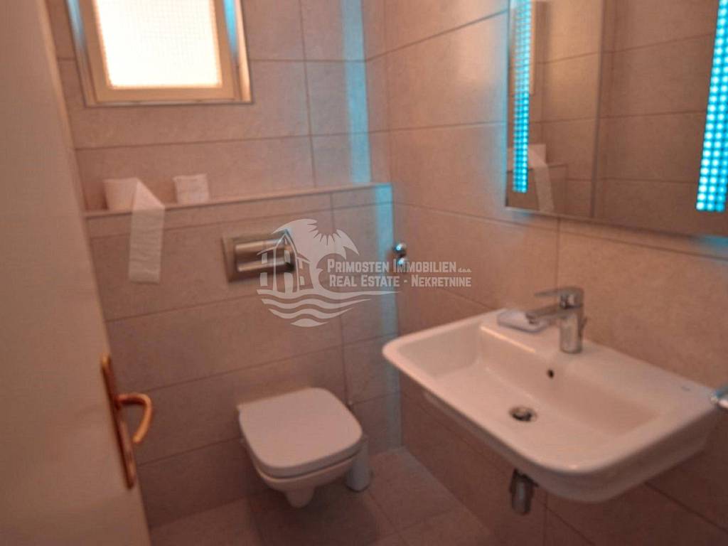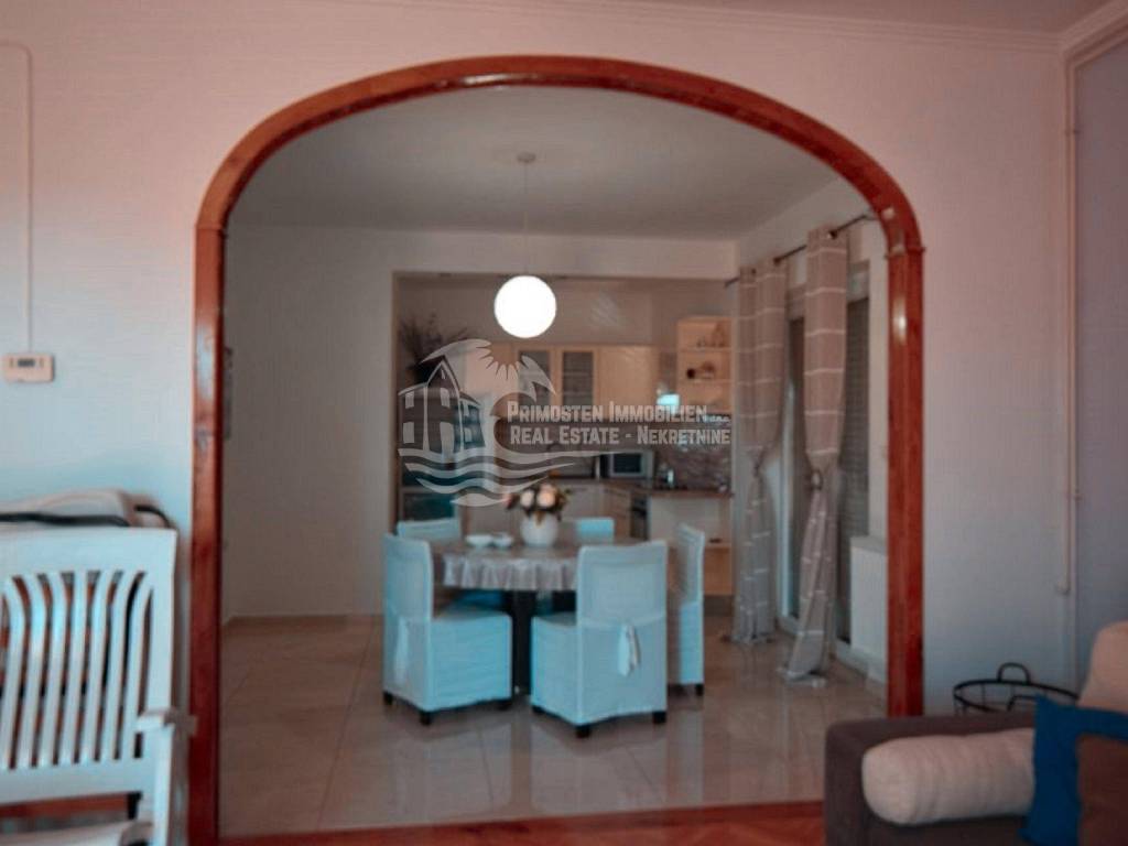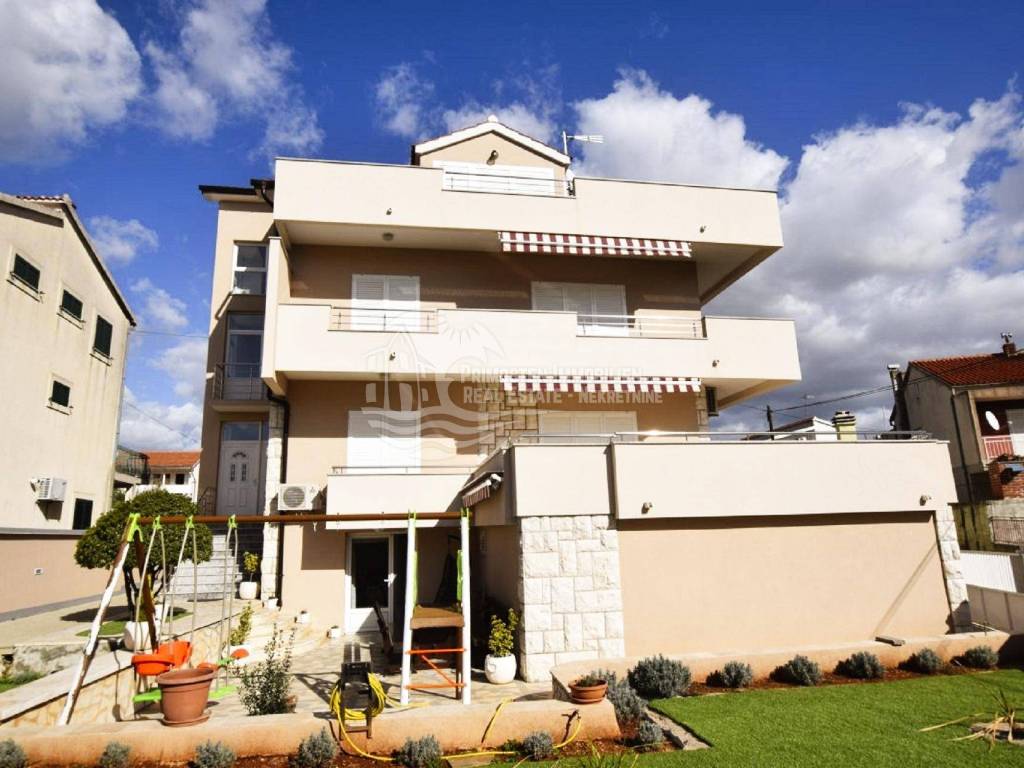 Apartment house near Brodarica with a surface of 400 m². The plot has a surface of 650 m². The house consists of ground floor and three floors. Each living unit has the same room layout and each has a surface of 100 m2. Rooms are arranged as follows: spacious living room with kitchenette which has access to a balcony, two bedrooms, a bathroom and a separate toilet. All rooms have high quality floor tiles, air conditioners, and central heating. Bathrooms have been completely adapted two years ago. In the yard there is an artificial lawn, and on the left there is a garage for two cars. The property is used for tourist purposes, and the sale is fully furnished and is ready to move immediately. Distance from the sea is ca. 150 m.