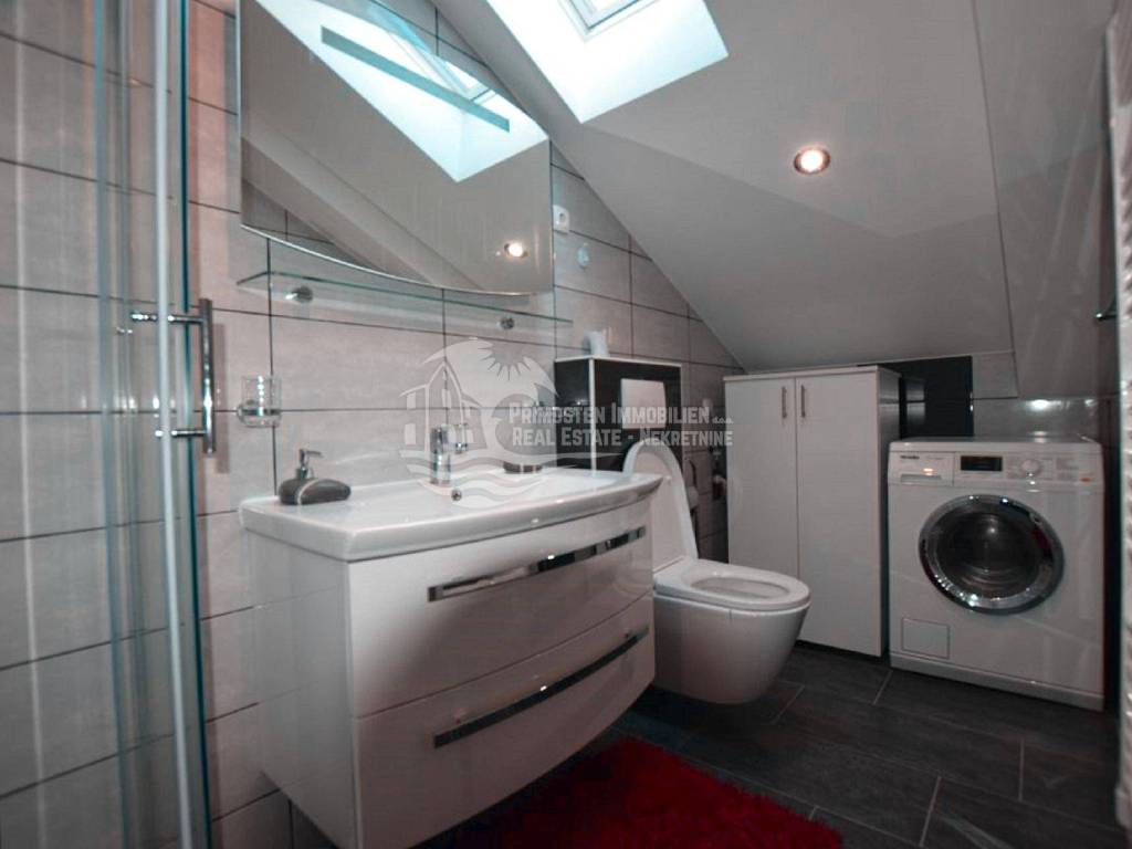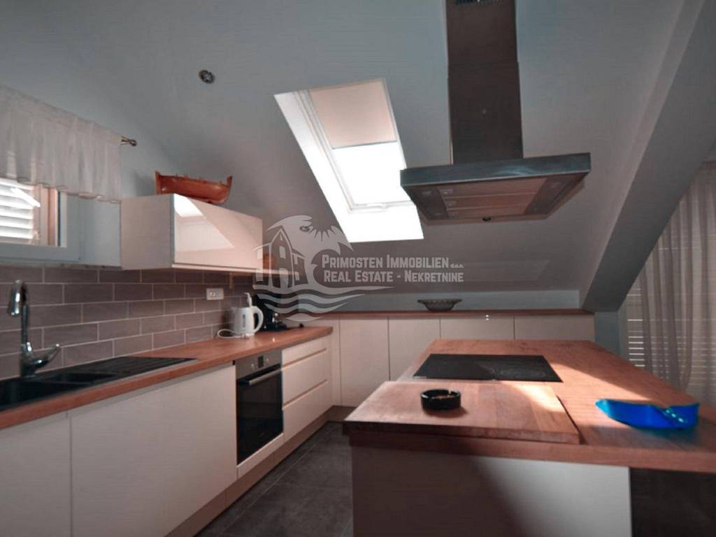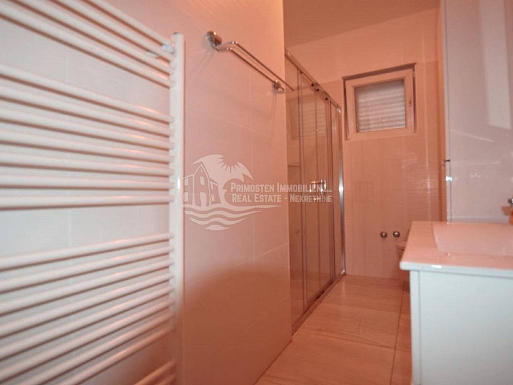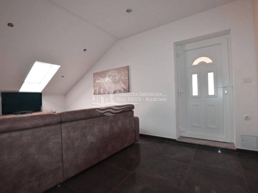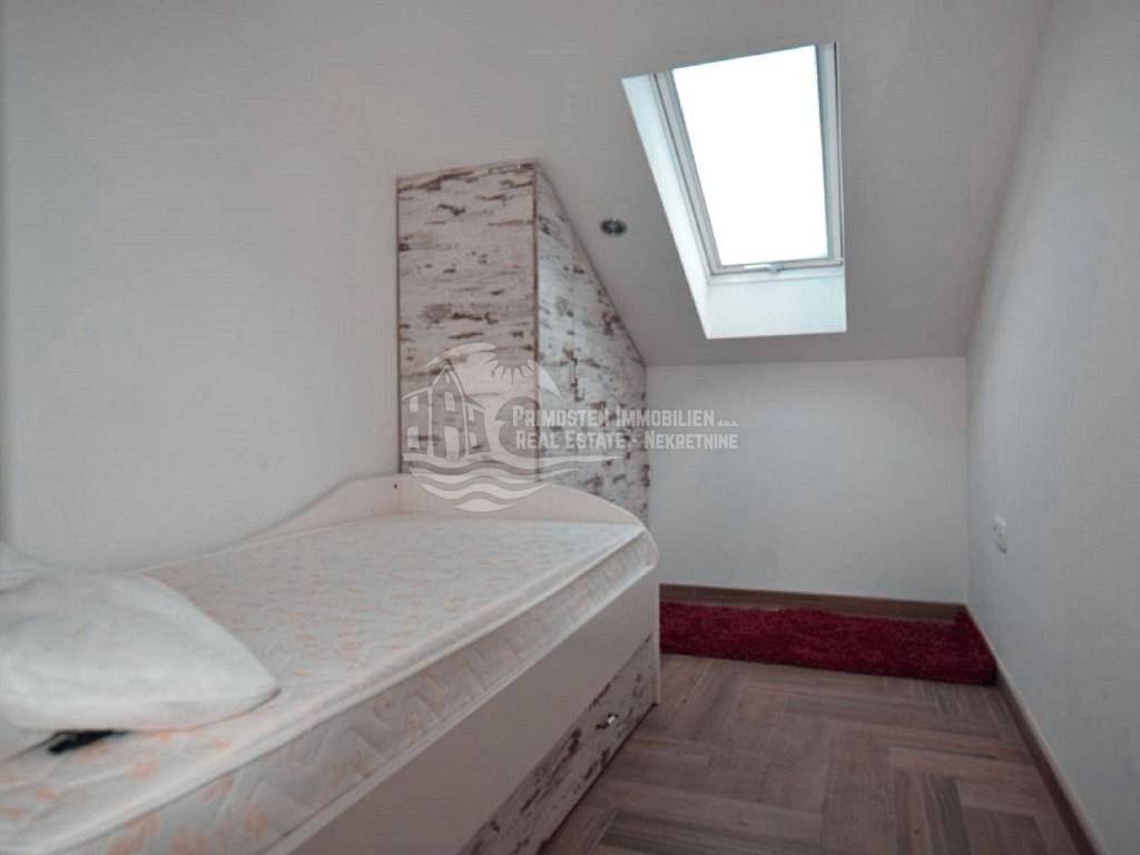 Apartment house near Brodarica with a surface of 400 m². The plot has a surface of 650 m². The house consists of ground floor and three floors. Each living unit has the same room layout and each has a surface of 100 m2. Rooms are arranged as follows: spacious living room with kitchenette which has access to a balcony, two bedrooms, a bathroom and a separate toilet. All rooms have high quality floor tiles, air conditioners, and central heating. Bathrooms have been completely adapted two years ago. In the yard there is an artificial lawn, and on the left there is a garage for two cars. The property is used for tourist purposes, and the sale is fully furnished and is ready to move immediately. Distance from the sea is ca. 150 m.