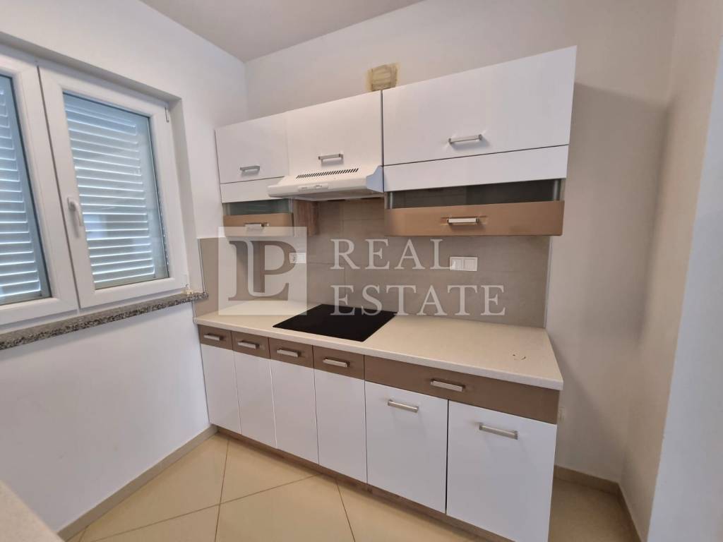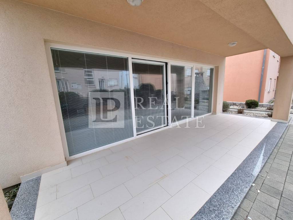 It is located on the ground floor of a smaller residential building, and the area of 97 m2 consists of a hallway, kitchen, spacious living room with access to a covered terrace, two bedrooms, bathroom, toilet and storage room.