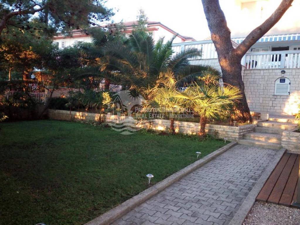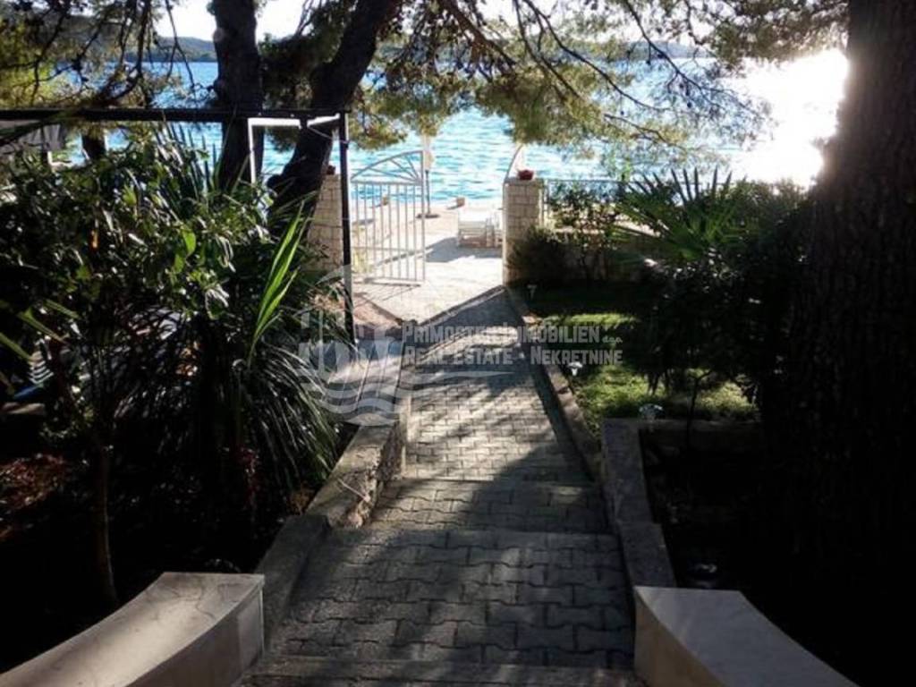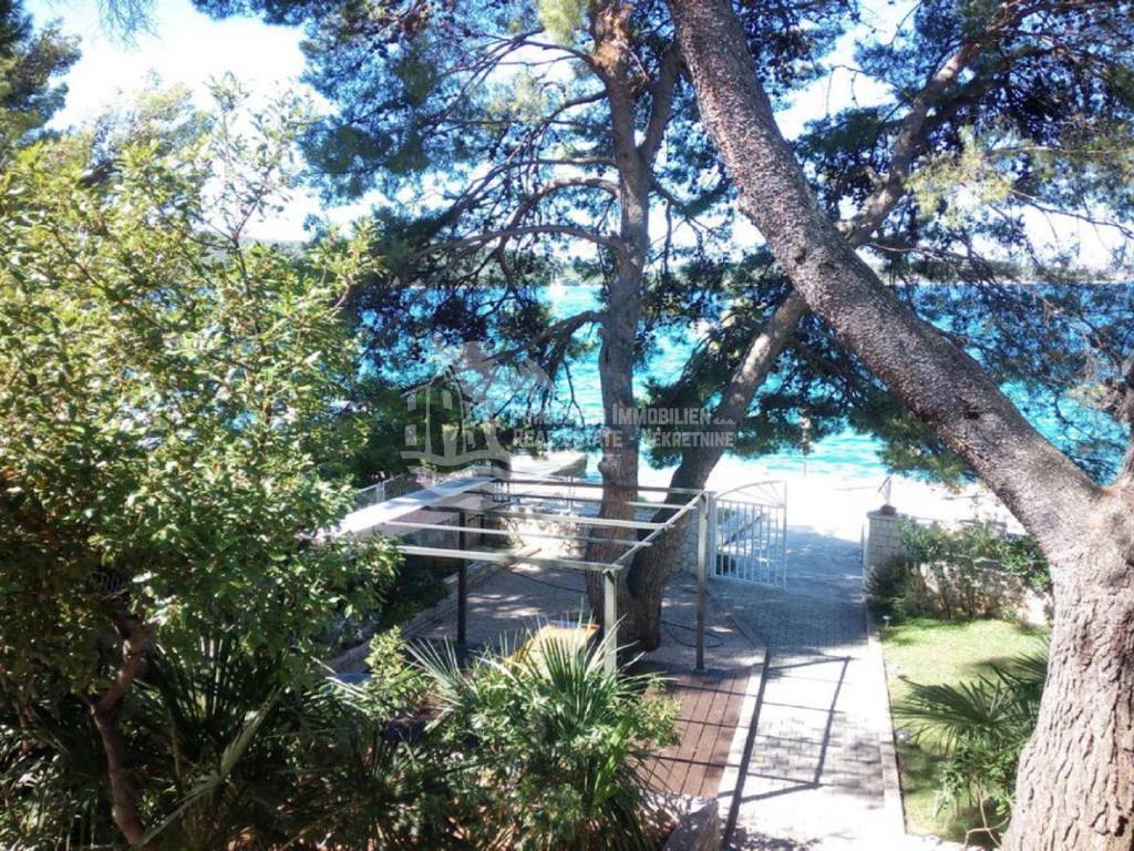 The villa in Zaboric, measuring 390 m2, is in an excellent location, directly by the sea. It was built on a land of 519 m2. The construction of the villa is arranged as follows: basement, ground floor, first and second floor. In the basement there is a garage and one bedroom apartment, and on the ground floor there is another one bedroom apartment with a large terrace. Furthermore, there is a two-room apartment on the first floor, while an apartment with three rooms is located on the second floor. Both apartments have terraces offering stunning views of the sea landscape. The house is positioned in a very quiet and peaceful location and has a natural shade made possible by Mediterranean pines. The house also has a beautiful garden that abounds in classic Mediterranean plants. Also, the villa has parking spaces for three cars, as well as a berth for a boat. The location of this house, right next to the sea, guarantees beautiful sunsets and sunrises at dawn, as well as a unique natural environment that only the Mediterranean landscape can provide.