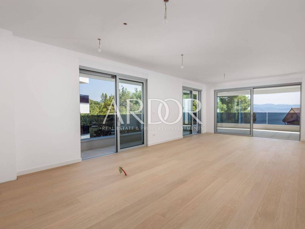 This luxurious apartment, located on the first floor of a new building, offers a spectacular view of the sea and the historic center of Opatija. With a balcony and a shared pool, the property offers a premium lifestyle, perfectly blending comfort and elegance.