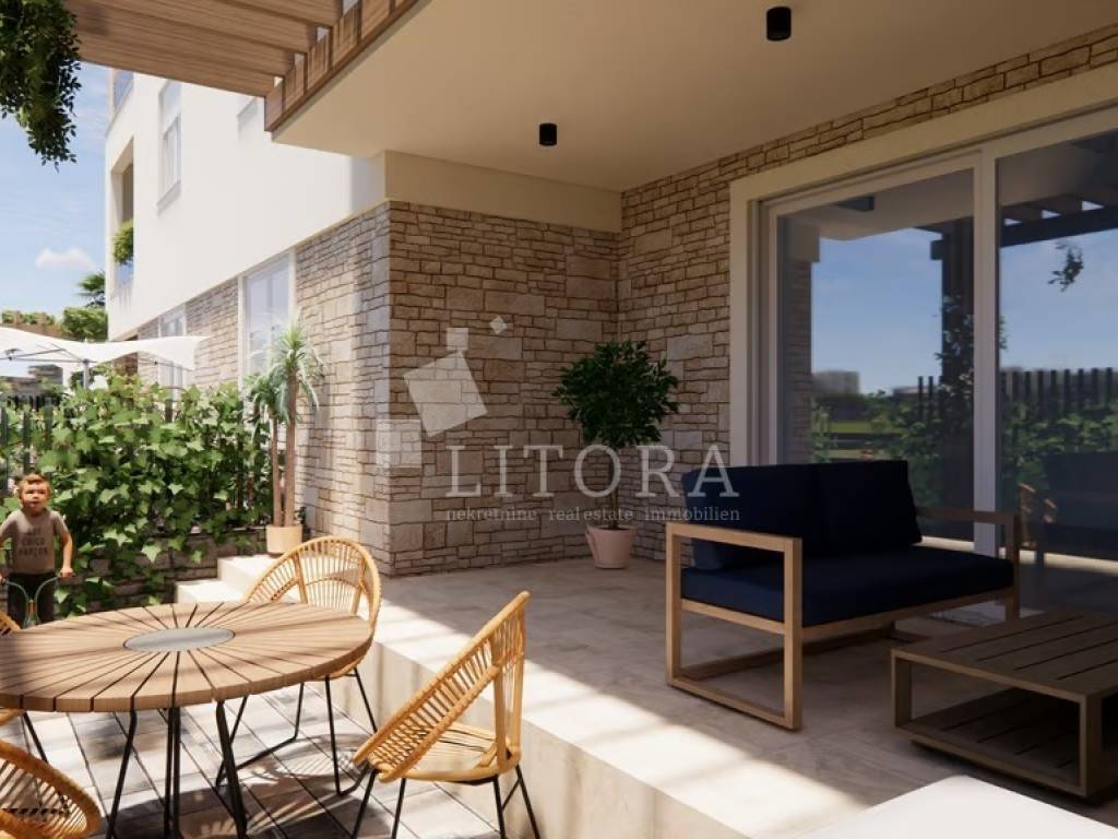 Brodarica, new apartment, 81,71m² of usable area with garden 55m2, storage room and parking, close to the sea