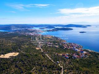 An attractive building plot for sale in Zečevo near Rogoznica, with an area of 2044 m². The land is located about 300 m from the sea, has a beautiful view of the azure sea, and is located in a quiet and peaceful location. Due to the larger area, it is suitable for the construction of three villas or holiday homes. It has a partially developed infrastructure (water, electricity), as well as an access paved road. The land is suitable for investment, and due to its good location it can be attractive to many investors. The view in front of the plot cannot be closed. Nearby are Rogoznica and Primosten, just a few minutes by car. Split Airport is about 30 km away. Ownership is 1/1.