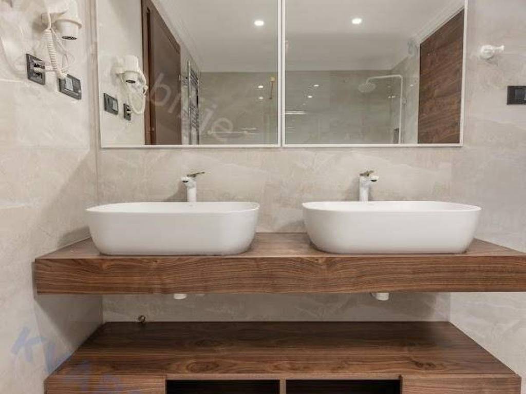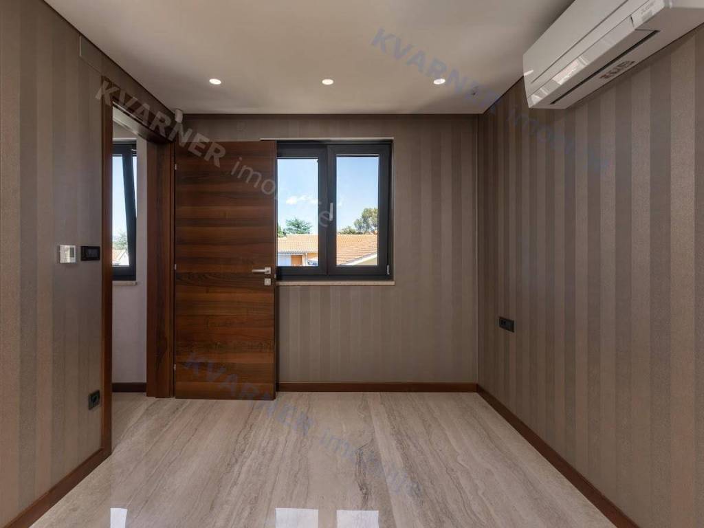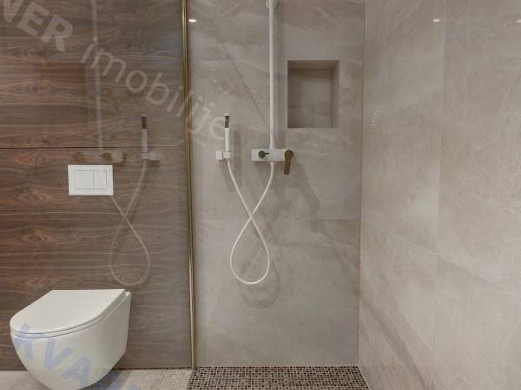 The apartment is part of an exclusive new building and has been built with high-quality materials. It is equipped with underfloor heating, Mitsubishi air conditioning in every room, external joinery with large sliding doors, and floors covered with top-quality porcelain tiles. The building also has suspended ceilings with built-in lighting, security entrance doors by Dierre, and interior doors made of walnut wood. Bathrooms are finished with a combination of ceramics and wood, while the facade is made of ventilated Roman Travertine stone.