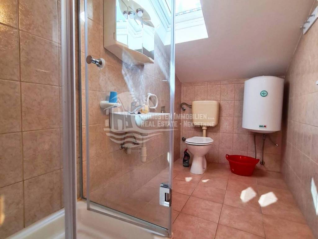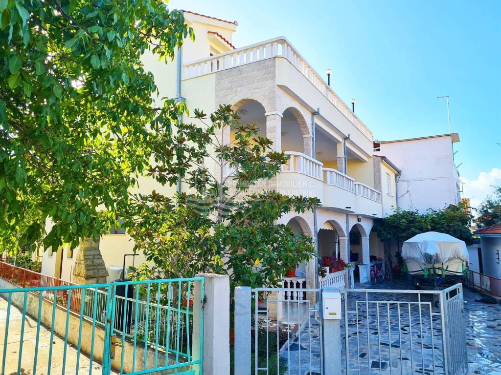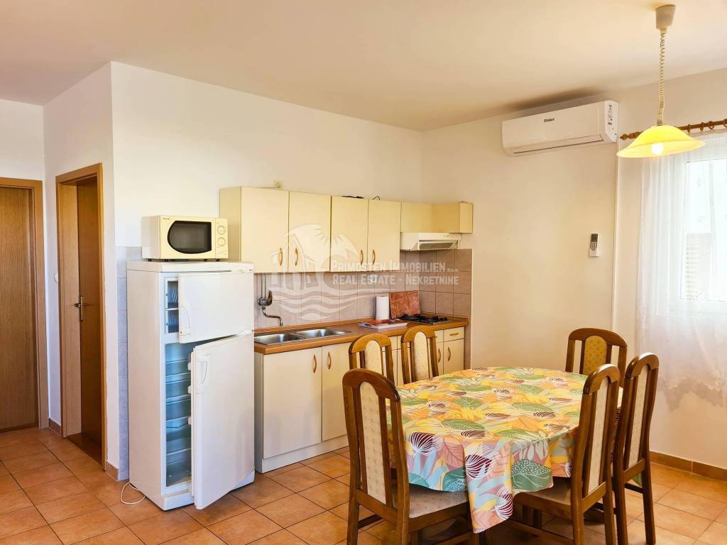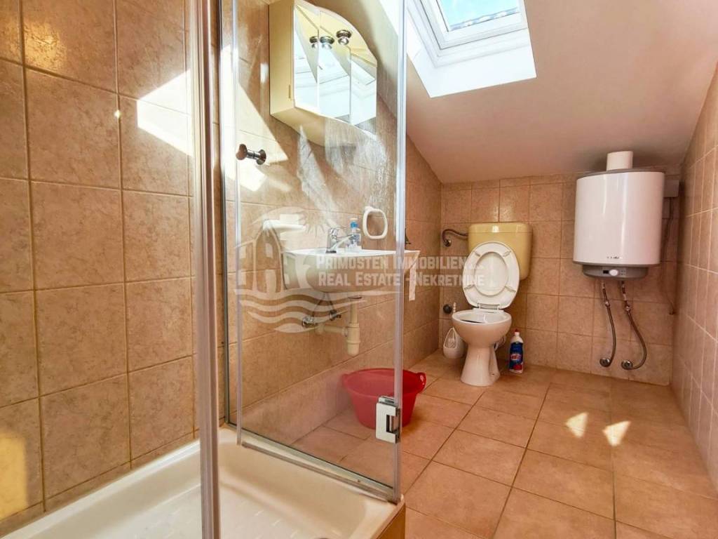 Well maintained apartment house near Rogoznica, near the beautiful beach and with unobstructed sea views. The house has six residential units and a living area of ​​359 m², and was built on a plot of 349 m². It spreads over a total of three floors: ground floor, first and second floor. On the ground floor there are two apartments which are connected by a large covered terrace. The first apartment has an area of ​​48 m² and consists of a living room, kitchen, two bedrooms and a bathroom. There is also a summer kitchen. The second apartment has an area of ​​33 m² and consists of a kitchen, bedroom and bathroom. Within the ground floor there are two smaller storage rooms for use. Furthermore, through the staircase paved with stone, you come to the first floor where there are two apartments which are also connected by a large terrace of 18 m². The first apartment has an area of ​​55 m² and consists of a living room, kitchen, two bedrooms and a bathroom. The second apartment has an area of ​​50 m² and consists of a living room and kitchen in one, two bedrooms and a bathroom. A staircase also leads to the top floor where there are also two apartments with a large terrace that has a fantastic unobstructed sea view. The first apartment has 46 m² and has a living room with kitchen, two bedrooms, bathroom and a small balcony. The second apartment is arranged in the same way and has the same area. The house has good insulation, energy certificate C category, installed solar panels and is ready to move in immediately and ready for use. It also has parking for four parking spaces. During the season, it earns a good income from renting apartments, and is located right next to an attractive beach. The location is quiet, cafes and restaurants are nearby, and Split Airport is 30 km away.