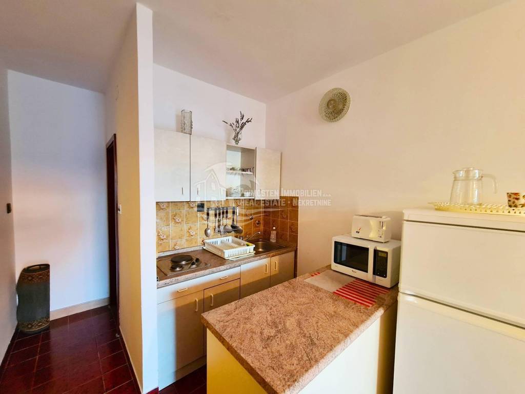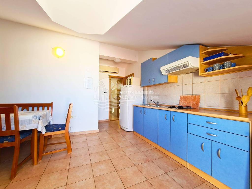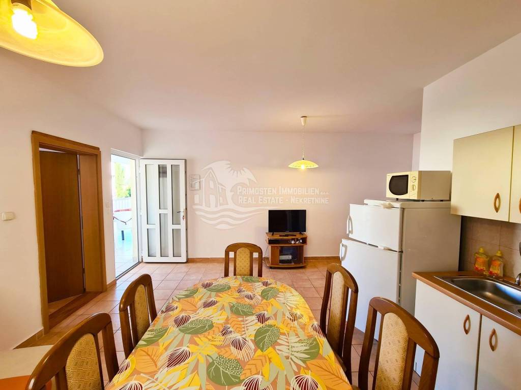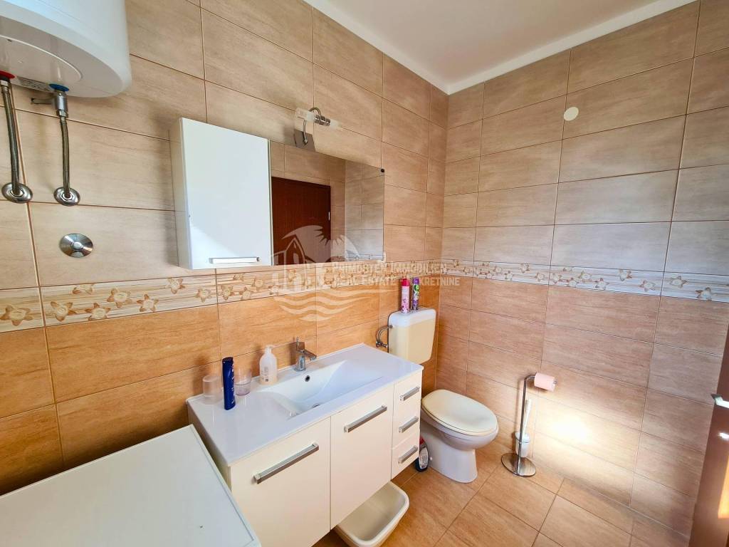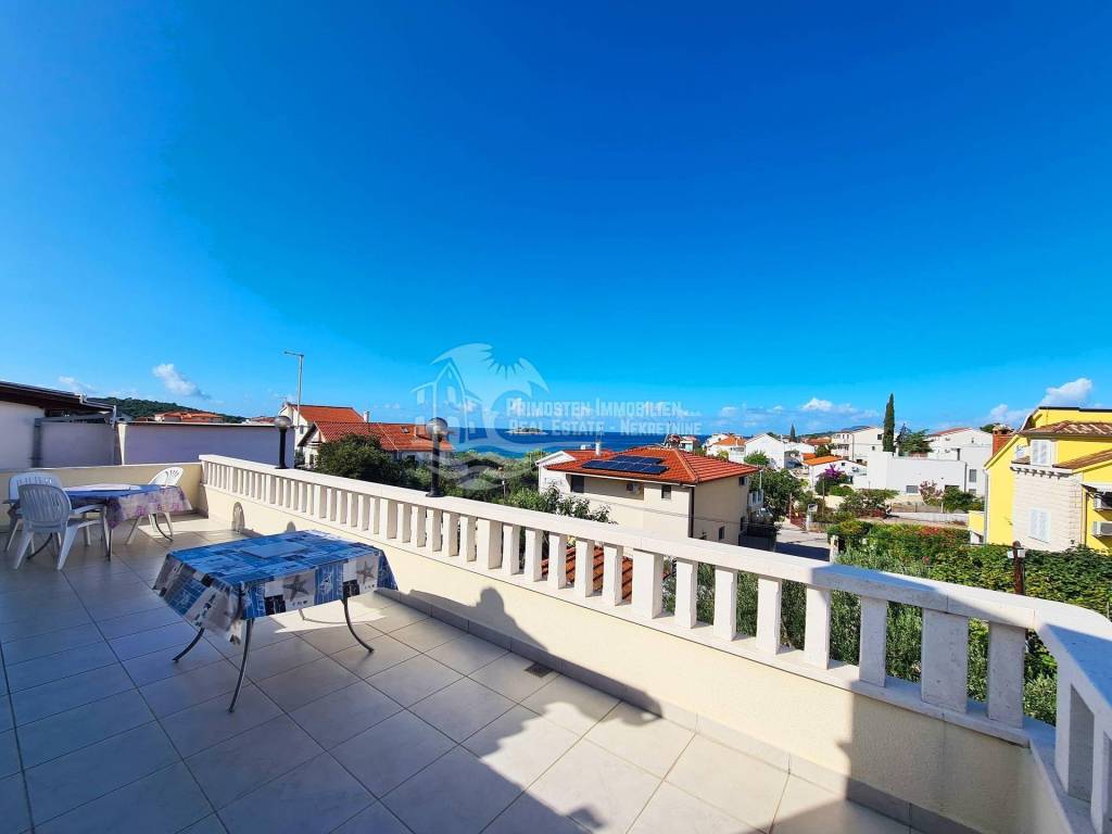 Well maintained apartment house near Rogoznica, near the beautiful beach and with unobstructed sea views. The house has six residential units and a living area of ​​359 m², and was built on a plot of 349 m². It spreads over a total of three floors: ground floor, first and second floor. On the ground floor there are two apartments which are connected by a large covered terrace. The first apartment has an area of ​​48 m² and consists of a living room, kitchen, two bedrooms and a bathroom. There is also a summer kitchen. The second apartment has an area of ​​33 m² and consists of a kitchen, bedroom and bathroom. Within the ground floor there are two smaller storage rooms for use. Furthermore, through the staircase paved with stone, you come to the first floor where there are two apartments which are also connected by a large terrace of 18 m². The first apartment has an area of ​​55 m² and consists of a living room, kitchen, two bedrooms and a bathroom. The second apartment has an area of ​​50 m² and consists of a living room and kitchen in one, two bedrooms and a bathroom. A staircase also leads to the top floor where there are also two apartments with a large terrace that has a fantastic unobstructed sea view. The first apartment has 46 m² and has a living room with kitchen, two bedrooms, bathroom and a small balcony. The second apartment is arranged in the same way and has the same area. The house has good insulation, energy certificate C category, installed solar panels and is ready to move in immediately and ready for use. It also has parking for four parking spaces. During the season, it earns a good income from renting apartments, and is located right next to an attractive beach. The location is quiet, cafes and restaurants are nearby, and Split Airport is 30 km away.