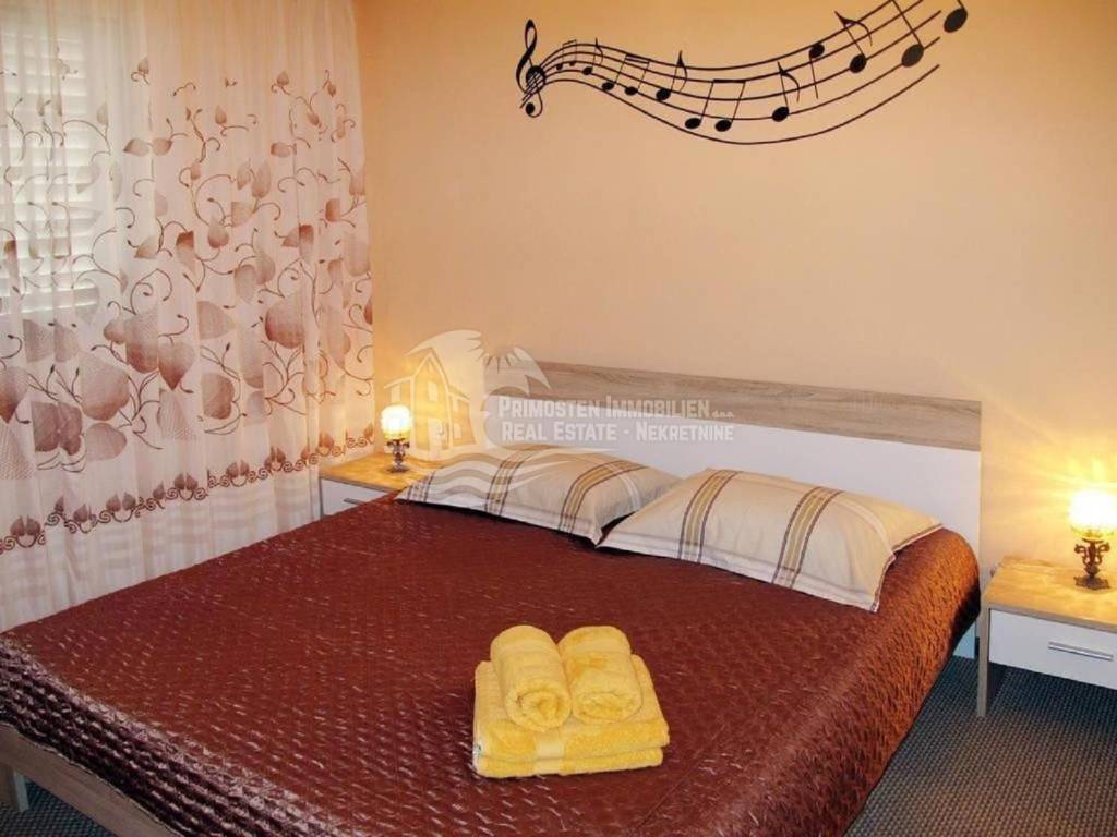 The two-family house in Rogoznica approx. 300 m from the sea and in an absolute top location, as it has a wonderful open view of the Marina Frapa and the open sea. The usable area is approx. 280 m² and the living space is approx. 250 m². It is surrounded by a 220 m² plot of land that is planted with lemon and cherry trees and grapevines. On the ground floor there is a large and another smaller storage room, as well as a tool room. An external staircase leads to the first floor, which offers a beautiful and modern three-room apartment with 120 m² and a spacious kitchen, living room extended by a balcony and terrace with pavilion, two bedrooms and bathrooms. Another external staircase leads to the second floor with 130 m² and is also a three-room apartment with a kitchen-, living room, two bedrooms and two bathrooms. Of course, this apartment also has a large terrace with a top sea view. The very well maintained house is air-conditioned and has oil central heating. All rooms are furnished and fully equipped. It also has a carport with two parking spaces. The location is particularly popular as a supermarket, butcher, hairdresser, cafe and restaurant are in the immediate vicinity. It is important to point out that this offer is incomplete and that more pictures will be available shortly. Viewing is possible from December 1st, 2021.