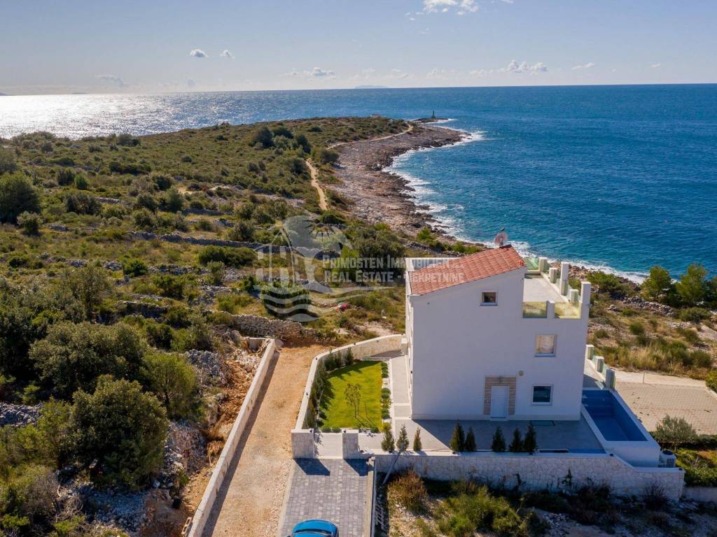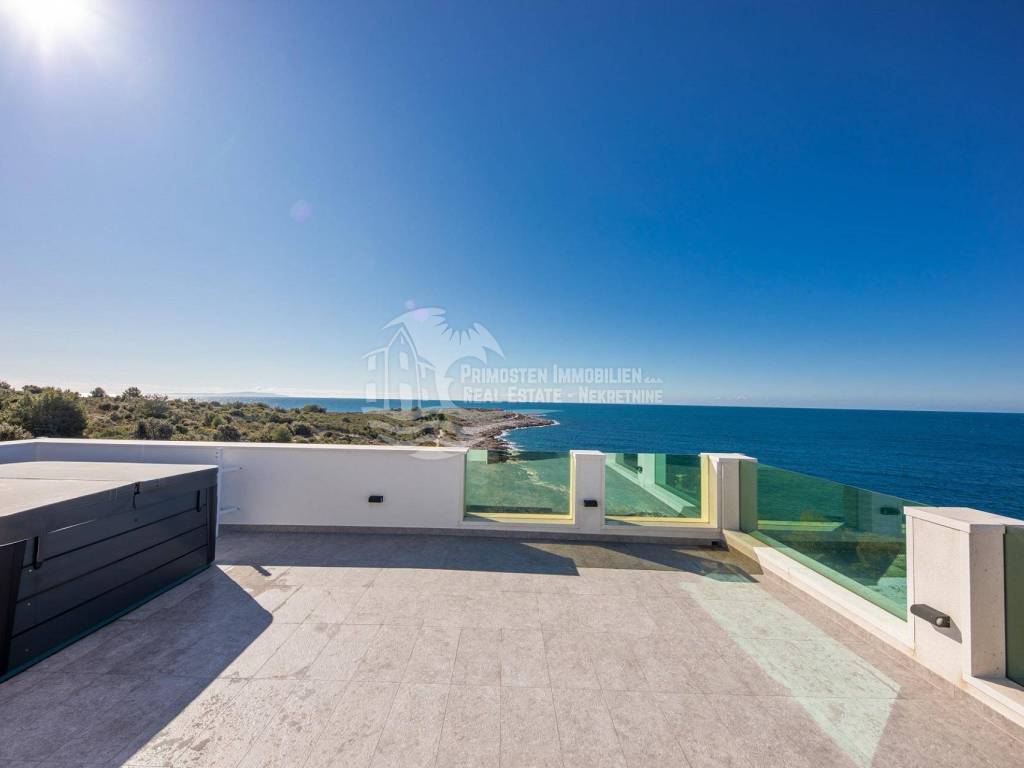 Newly built luxury villa near Rogoznica, on four floors provides all the comfort you can imagine. The villa has an area of ​​380 m² and was built on a plot of 390 m². It is only 50 m away from the sea where there is an enchanting seaview of the Mediterranean. The ground floor has two parts where the first part includes a garage, gym, engine room, bathroom, living room and kitchen. The second part consists of a living room, kitchen, bathroom and has access to two covered terraces. From the terrace there is a magical view where you can enjoy the blue of the clear Adriatic Sea. This space can be complemented with outdoor furniture for a complete environmental experience. At the level of this part of the ground floor there is an outdoor parking and a swimming pool. Furthermore, on the first floor there are three bedrooms, two of which have their own bathrooms, and another bathroom is located separately. On the second floor there is a sauna, bathroom and terrace with jacuzzi. From all floors there is a view of the turquoise sea which gives a complete visual experience. The villa is modernly decorated and furnished, equipped with quality equipment and all rooms are air conditioned. This area of ​​Rogoznica is known for its serene and relaxing landscape where you will be washed away by calm energy. You will definitely feel carefree while enjoying the comfort that this luxury property offers. You can have a real cinematic atmosphere while watching the sea rocks with pearly overflowing colors which are washed by the sea with a diamond shimmering surface.