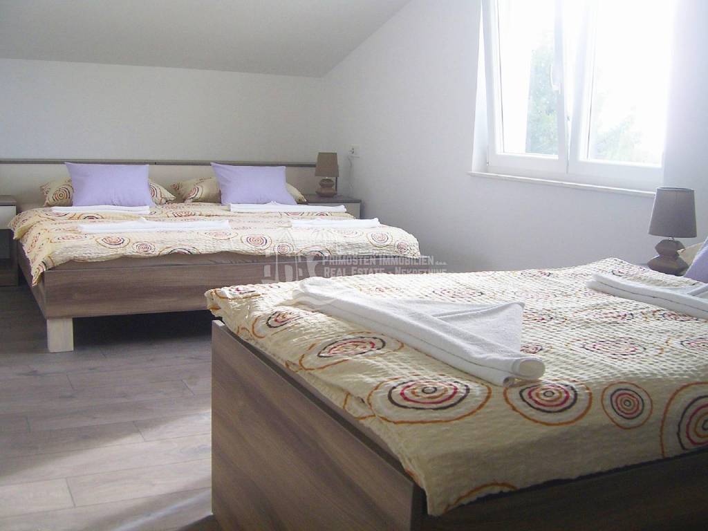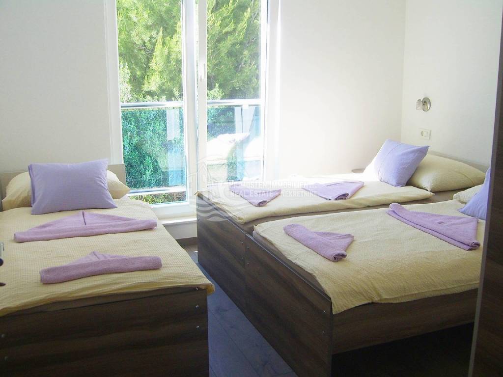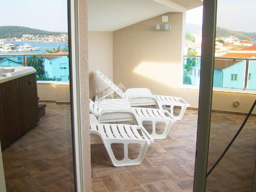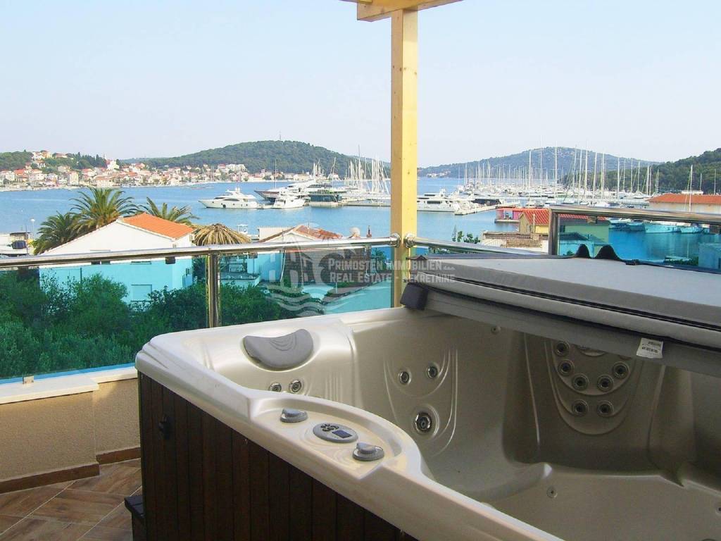 Villa in Rogoznica, 100 m from the sea, living area approx. 300 m². The villa has a total of four apartments. The apartment on the ground floor has an area of 85 m² and consists of three bedrooms, two bathrooms and a kitchen that opens onto a large south-facing terrace equipped with outdoor furniture. On the first floor there is also a residential unit of 85 m² consisting of two bedrooms, two bathrooms, a spacious modern kitchen, a living room and an exit to a covered terrace. There are two apartments on the second floor. One apartment is 60 m² and consists of a living room, a kitchen, two bedrooms, a bathroom, a separate toilet and has access to a large terrace with a jacuzzi that offers a view of Marina Frapa and the sea. The second apartment has an area of 65 m² and has a living room, a kitchen, two bedrooms, a bathroom, a separate toilet and a covered terrace with a view of the sea. All residential units are air-conditioned and modernly decorated.