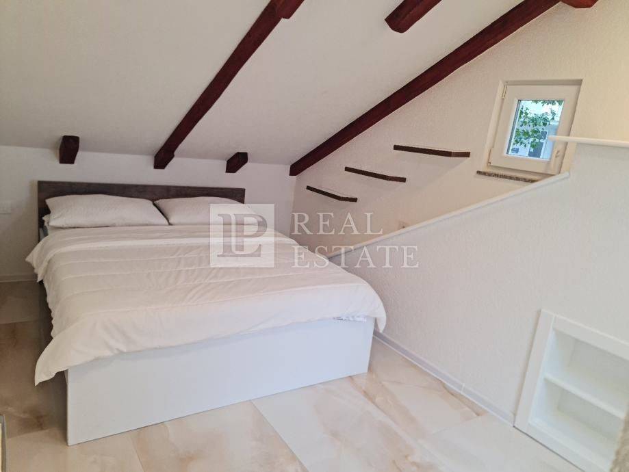The building consists of 7 separate residential units, 3 of which are on the ground floor, 2 on the first floor and 2 on the second floor. The apartments are fully furnished and decorated. Five apartments have a concept of 1 bedroom + living room, while two apartments consist of 2 bedrooms + living room. Apartments on the first and second floor have balconies with a view of the sea and their own parking space in the yard.