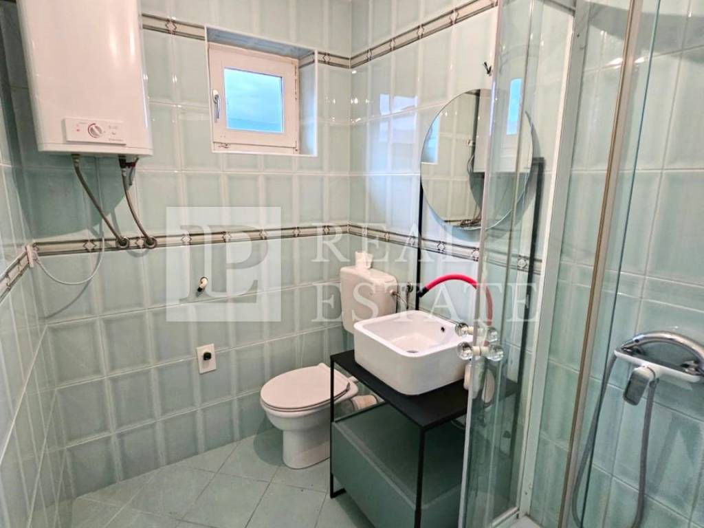 We are selling an apartment on the fourth floor of a modern residential building. The apartment can be reached by external stairs or elevator. The area of 55.5 m2 consists of a hallway, a bedroom, a bathroom and a spacious open space consisting of a kitchen and a living room. The living room opens onto a terrace with a spectacular view of the sea and the island of Krk.