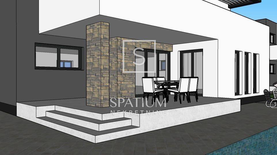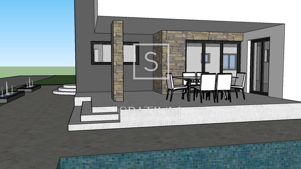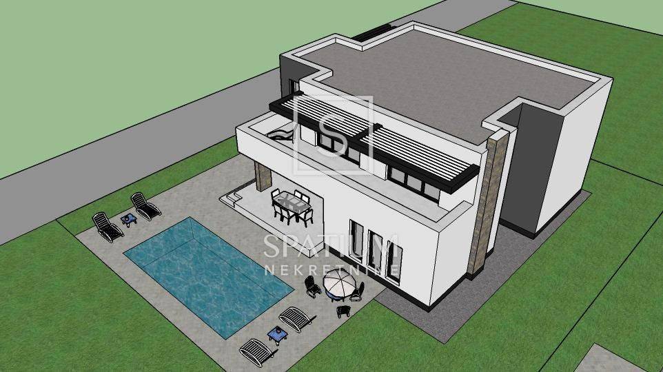GALIŽANA, we have received a modern villa with a swimming pool in the unfinished phase in Galižana, a perfect project for those with a vision. An attractive new building is for sale in the picturesque Galižana, located between Pula and Vodnjan, which represents an ideal opportunity for all those who want to design their home according to their personal taste. This spacious villa is in the unfinished phase, which leaves freedom for interior decoration according to your own wishes, while most of the key construction works have been completed - including the installed windows with mosquito nets and the concrete pool. The property extends on a plot of 601 m², while the house itself has approximately 287 m² of living space spread over two floors - ground floor and first floor. The concept of the house is designed in a modern and functional way, with open spaces, lots of natural light and great potential. On the ground floor there is a spacious living room that connects to the kitchen and dining room into a single, bright unit. Five to six bedrooms are planned, each with its own bathroom, which provides a high level of comfort and privacy. In addition, there are additional facilities such as a guest toilet, technical rooms and a space that can be used as an office or home gym. Upstairs there are three additional bedrooms with en-suite bathrooms, and the large kitchen on this floor can be converted into another bedroom if necessary. The exit leads to a spacious balcony with a beautiful sea view, ideal for relaxing and enjoying the Mediterranean ambience. The location of this property further enhances its appeal. It is located in a quiet part of Galižana, and at the same time in close proximity to all important amenities - from shops and schools, to the pebble beaches in Fažana, which are only 6 km away, overlooking the magical Brijuni Islands. The Brijuni National Park, as well as numerous other natural and cultural gems of Istria, are also within easy reach. The villa has all the necessary documentation, a building permit and project plans, and utility contributions have already been paid. Water and electricity are available at the road, while some of the construction materials have already been provided (including insulation, bitumen tape and plasterboard), which further facilitates the completion of the works. This property is the perfect opportunity for investors, families or individuals looking to create a unique home that fully reflects their style and needs.