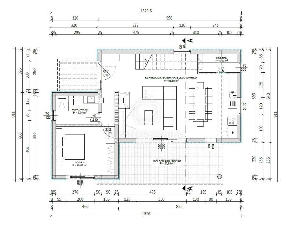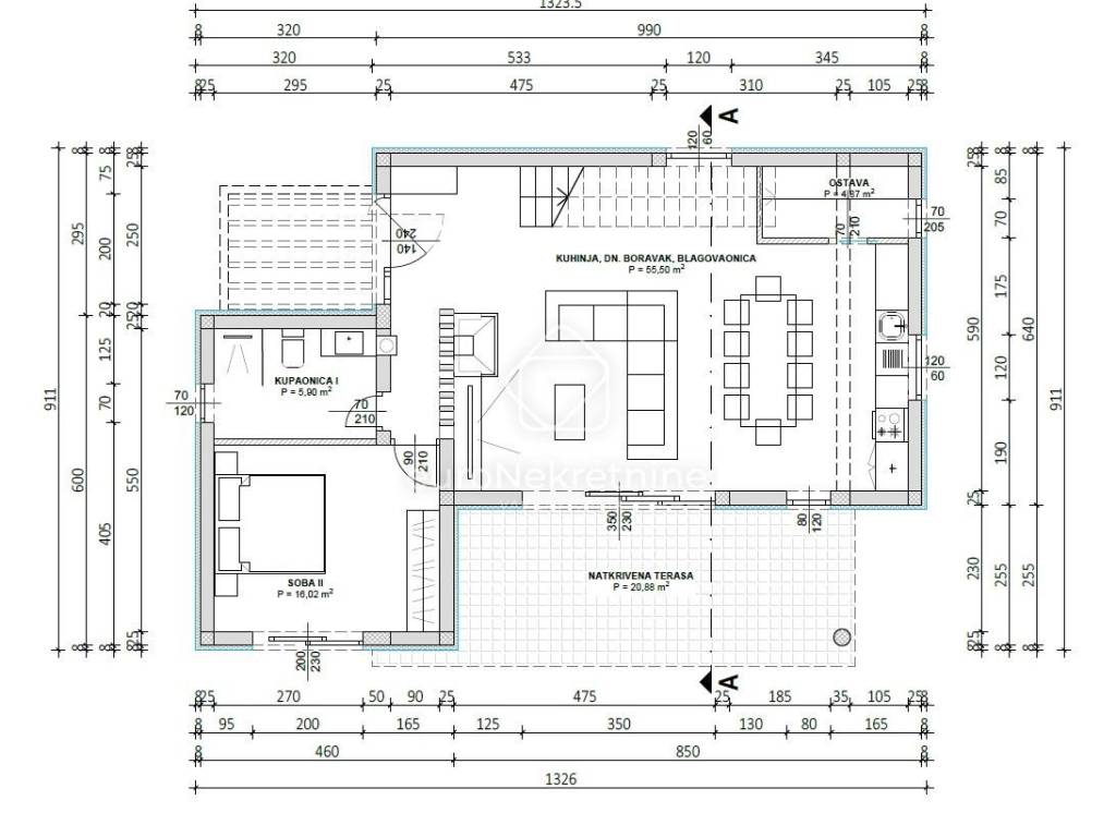 Natkrivena terasa: 20,88 m² (prije obračunata po koeficijentima)