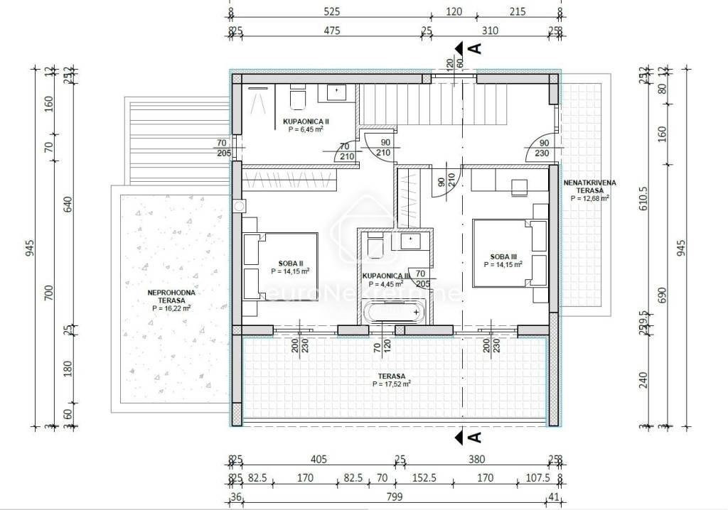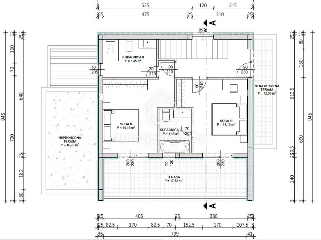 Terasa (natkrivena): 17,52 m² (prije obračuna koeficijenata)