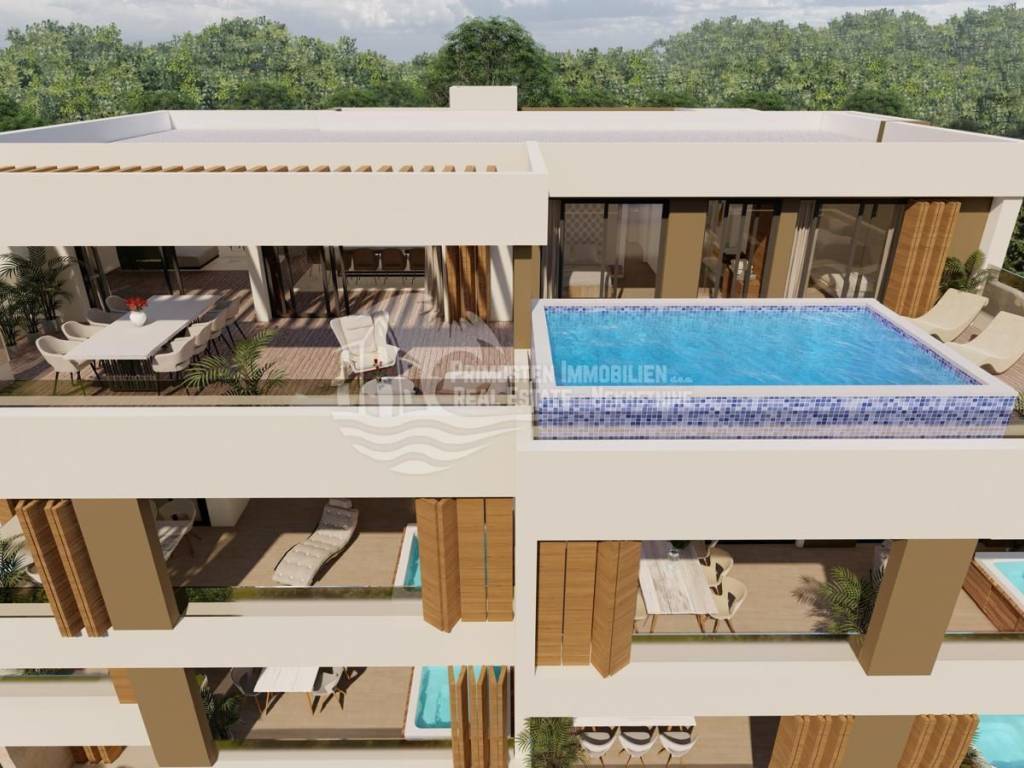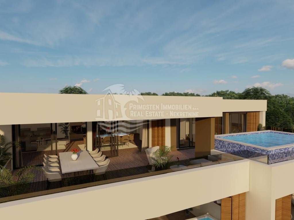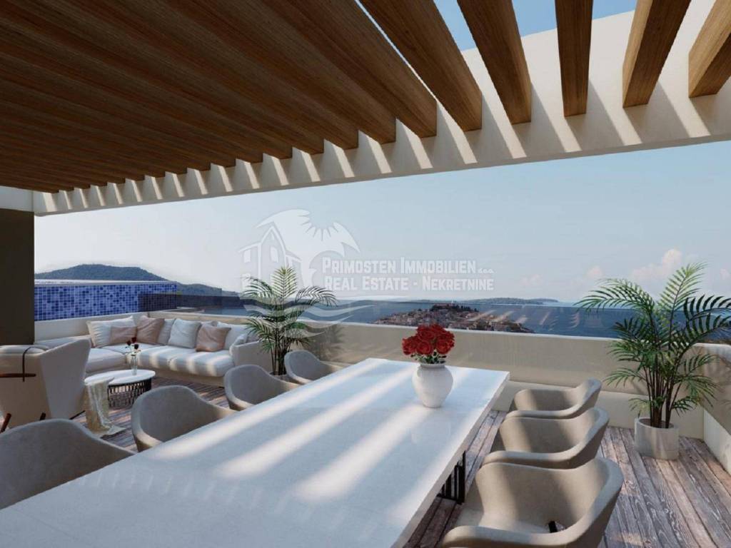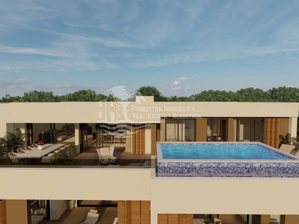 UNIQUE OFFER! For sale is apartment S2, located on the ground floor of a building that is currently under construction and consists of 7 residential units. The building is located in an extremely good location, close to all tourist facilities, and close to the beautiful beaches of Primošten. The distance to the sea is approx. 400m. This luxury apartment has a living area of 138.19 m2 with terrace, garden and parking spaces. The apartment consists of a living room, kitchen and dining room (33.76 m2), three bedrooms (12.95 m2, 10.67 m2 and 12.69 m2) and two bathrooms (5.58 m2 and 5.12 m2). . From the living room there is access to the loggia of 39.44 m2. In addition to the loggia, the apartment has a spacious terrace with a swimming pool and a garden, one garage parking space, one outdoor parking space and a storage room. All apartments will be equipped with security doors, while all internal doors in the apartments will be 2.45 m high.