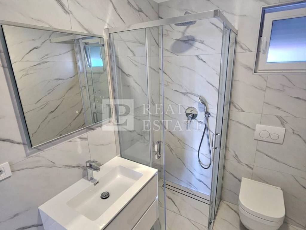 The apartment has underfloor heating and air conditioning, which contributes to comfortable use throughout the year. The apartment is equipped with top-quality first-class ceramics, PVC joinery, electric aluminum shutters, mosquito nets on all windows and quality sanitary ware in the bathroom.