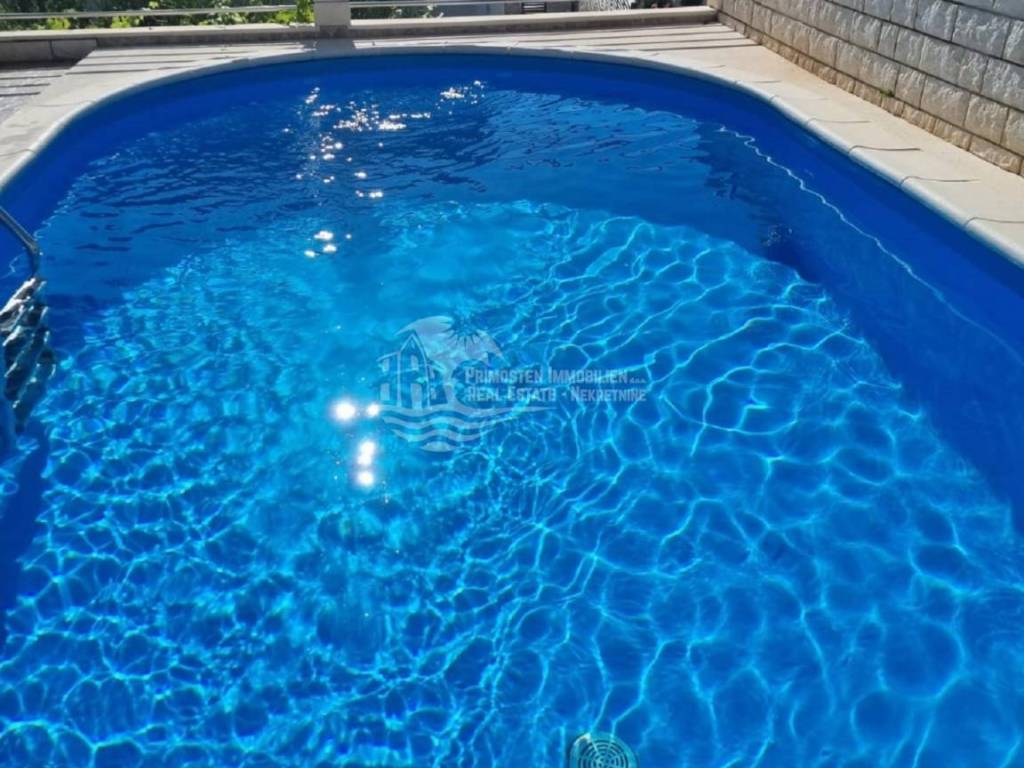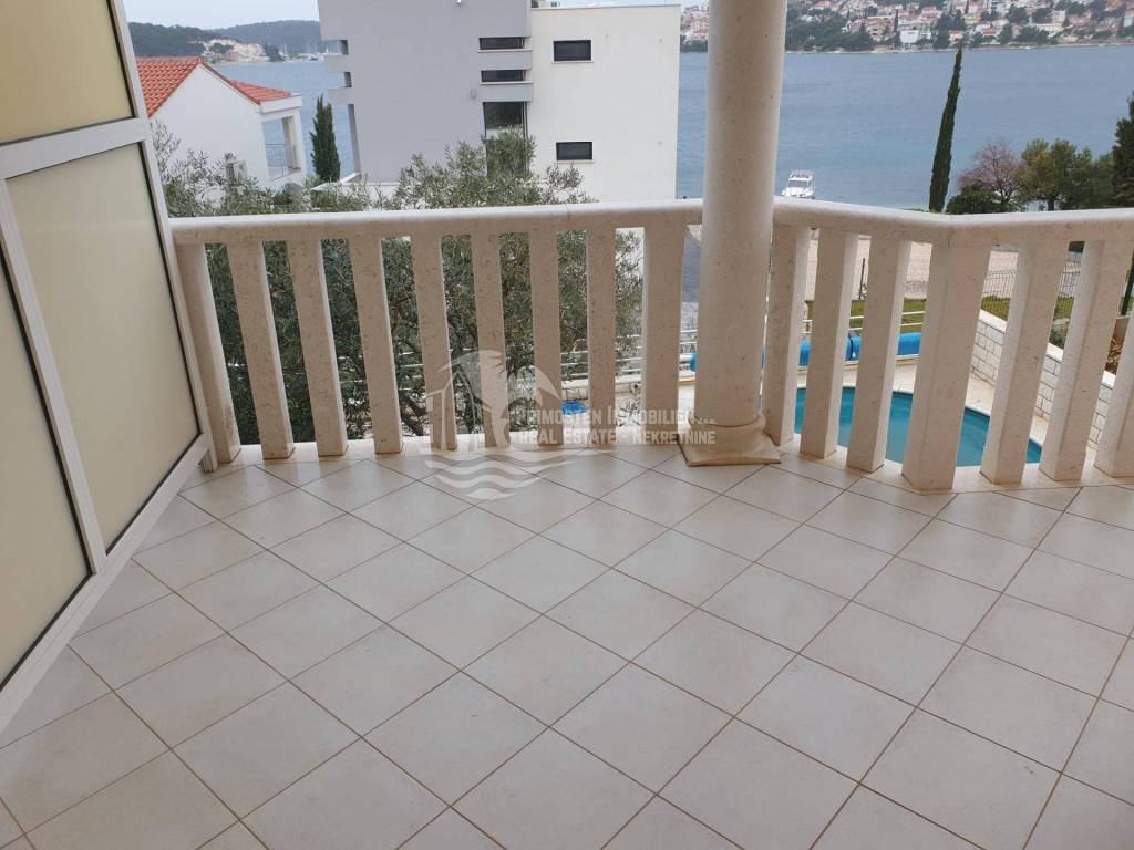 This beautiful house is surrounded by a landscaped yard with olive trees and Mediterranean plants, and the swimming pool and sea view create the perfect atmosphere for rest and relaxation. On the ground floor there is a business space that was intended for a restaurant, with an associated storage room and two toilets. There are also two apartments, each of which has a bedroom, bathroom, spacious living room, dining room and kitchen with access to a terrace and garden, and a view of the sea. On the first floor there are two furnished apartments, each with two spacious bedrooms, bathroom, kitchen, dining room and living room from which there is access to a terrace with a stunning sea view. On the second floor there are two apartments with a large spacious terrace. The apartments consist of a living room, dining room and kitchen, bedroom and bathroom. On the third floor there is a spacious living room, dining room and kitchen, as well as a terrace with a sea view. Additional comfort is provided by two bedrooms and two bathrooms.