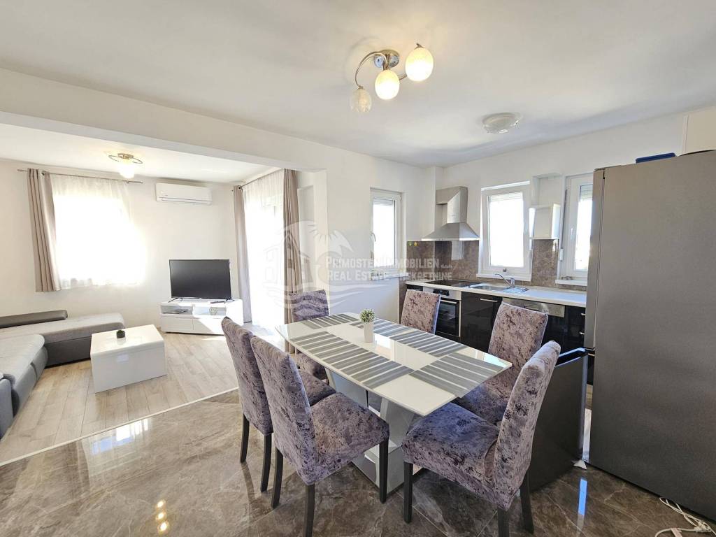 A modern apartment house of 258 m², located on three floors, built in 2020, on a plot of 501 m², is for sale. The property is located just 500 meters from the sea and the beach, providing an ideal combination of privacy and proximity to nature.