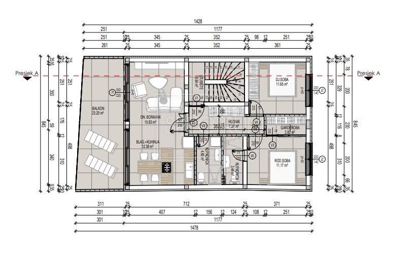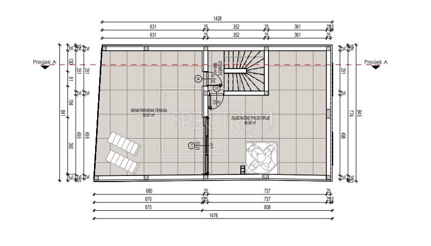 The apartment is located on the 2nd floor of a newly built residential building. The area of ​​the living space is 69.31 m2. The apartment consists of a living room with an open space concept kitchen and dining room, 2 bedrooms, 2 bathrooms, a wardrobe and a hallway. The living room leads to a spacious covered terrace of 22.44 m2. Stairs lead to the roof, where there is a spacious terrace with a beautiful view of the sea and nature. The area of ​​the covered part of the roof terrace is 45.82 m2, while the area of ​​the uncovered part is 50.81 m2. Preparations for a jacuzzi have been made on the roof.