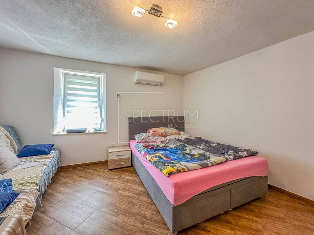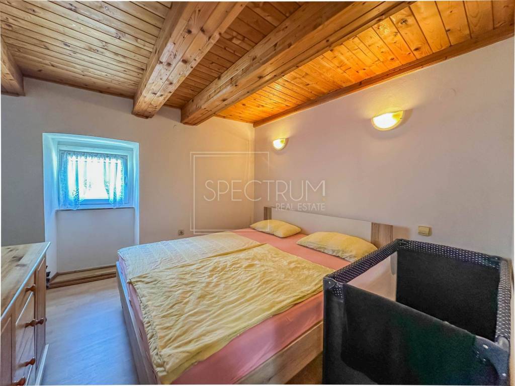 The house is sold furnished. The heating is regulated by electric underfloor heating and air conditioning. The house also has a chimney, so there is a possibility of installing a wood-burning stove, depending on the wishes of the new owner. The house was renovated in 2024 and has a tourist categorization.