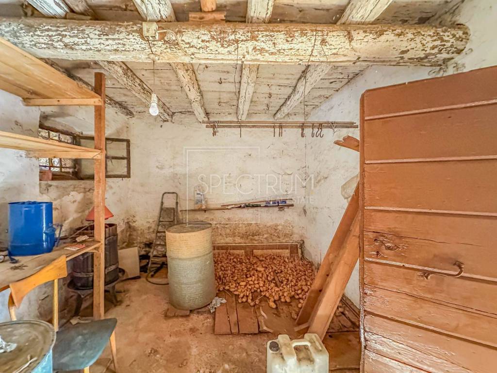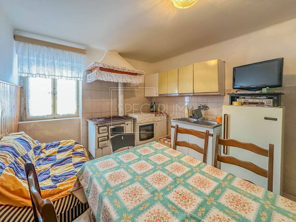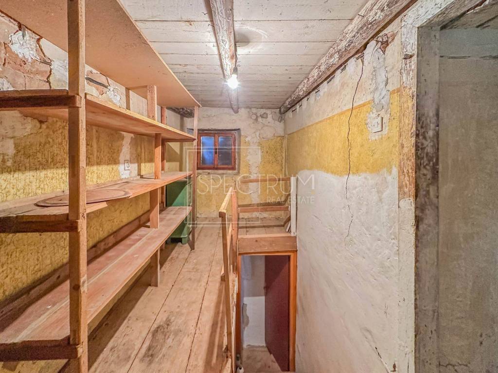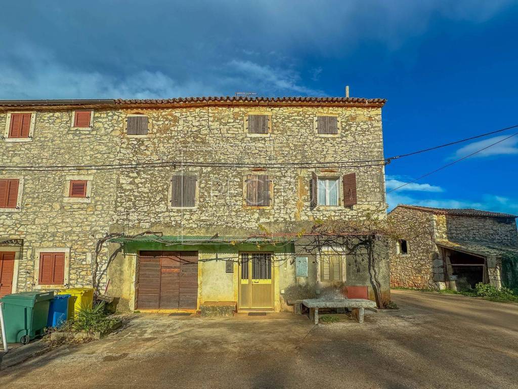 The area of this end stone house in a row is 168 m2. The house extends over the ground floor, 1st floor and 2nd floor. On the ground floor there is a hallway and 2 rooms that can be used for various purposes. On the 1st floor there is a living room, kitchen with dining room, 2 bedrooms, bathroom and hallway. On the 2nd floor there is a hallway and several rooms that can also be used in various ways, depending on the wishes of the new owner. The house is characterized by stone elements, which give the house an authentic Istrian charm. The interfloor structure is wooden. The house requires renovation. On the ground floor there is an additional space with a separate entrance that can be used as a tavern. The house has a chimney, so the heating is currently regulated by a wood stove. The house is already connected to electricity and water, and there is a septic tank on the plot.