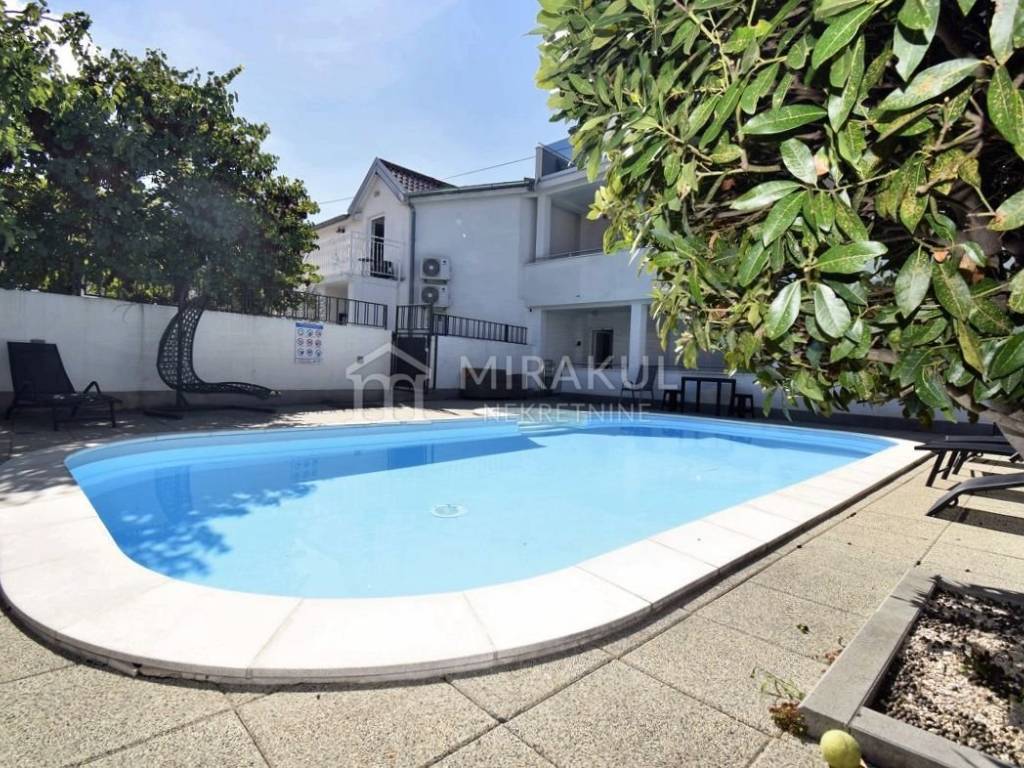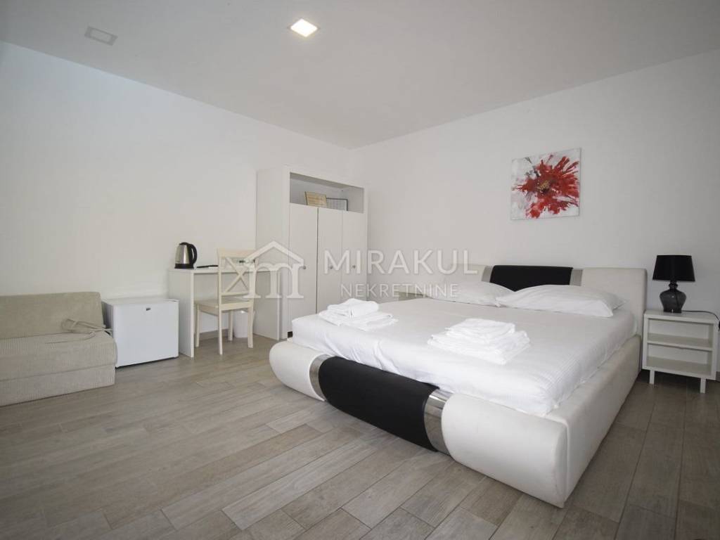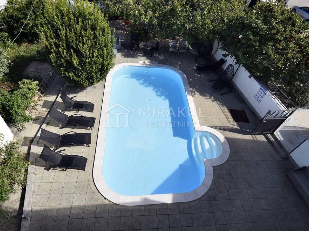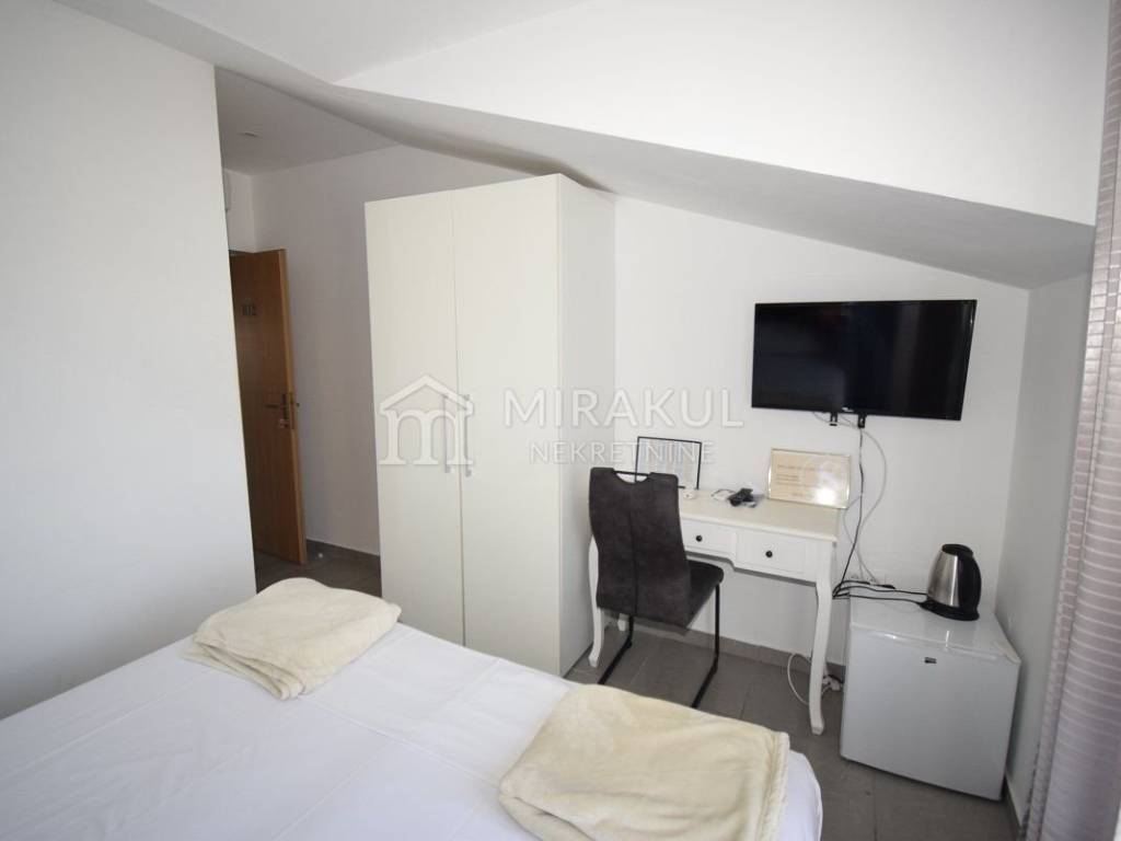 The residential building consists of the ground floor, first and second floors. There are 7 apartments and 7 rooms in the building. It is a well-established tourist business. All apartments and rooms are fully furnished and renovated. There is a spacious swimming pool in the inner yard.