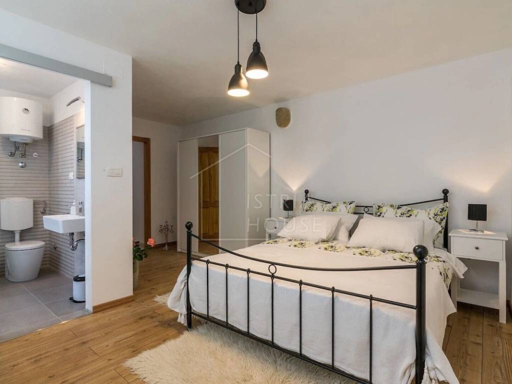 The house is detached, autochthonous and stone, and consists of a charming living room with a kitchen where the Istrian stone style has been preserved as much as possible, three bedrooms, each room has its own bathroom. The living room opens onto a beautiful terrace with a panoramic view of Motovun. The house also has a large storage room that can be converted into an additional bedroom or a space for hanging out.