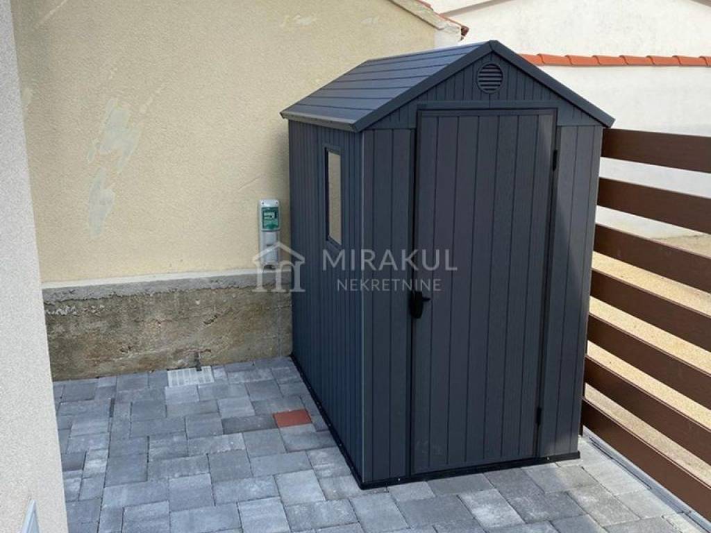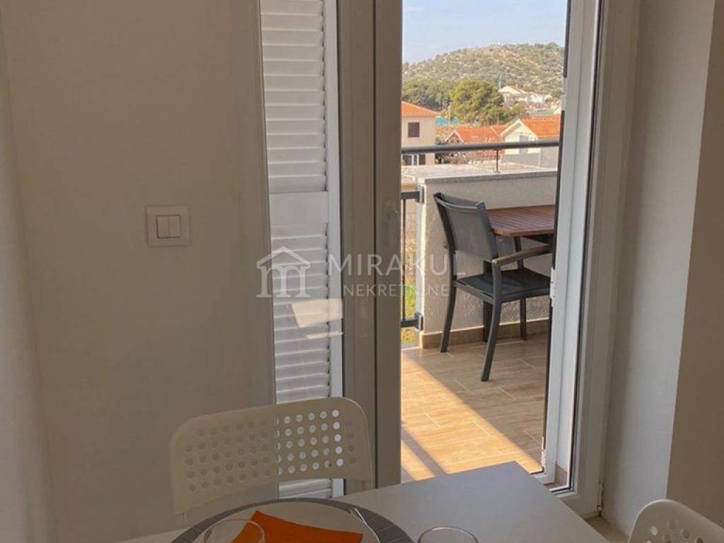 In Betina, in a quiet location near the sea, an apartment with a garden and a sea view is for sale.