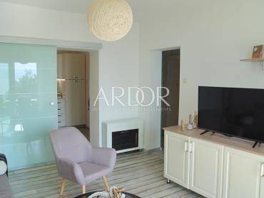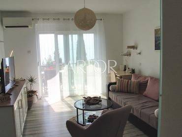 A nice apartment is for sale, which is located on the ground floor of a family house. It consists of a bedroom, a living room, two bathrooms, a kitchen, two storage rooms, a terrace and a veranda. The apartment is equipped with air conditioning, it is furnished with all the necessary appliances, and parking is provided.
