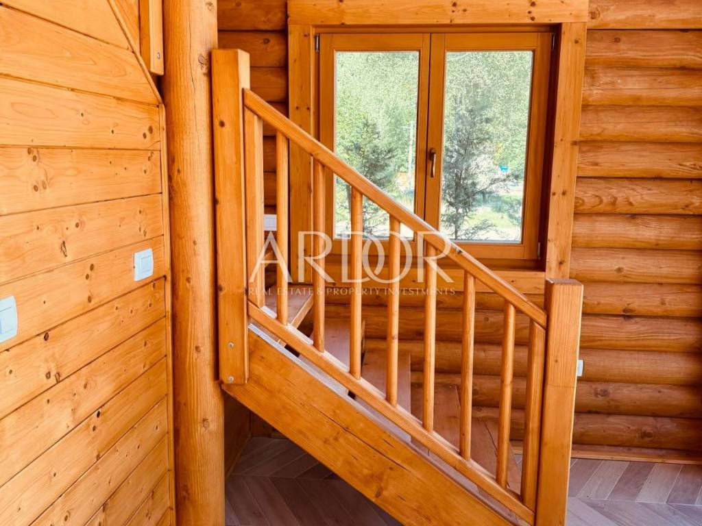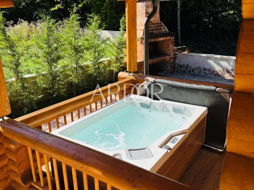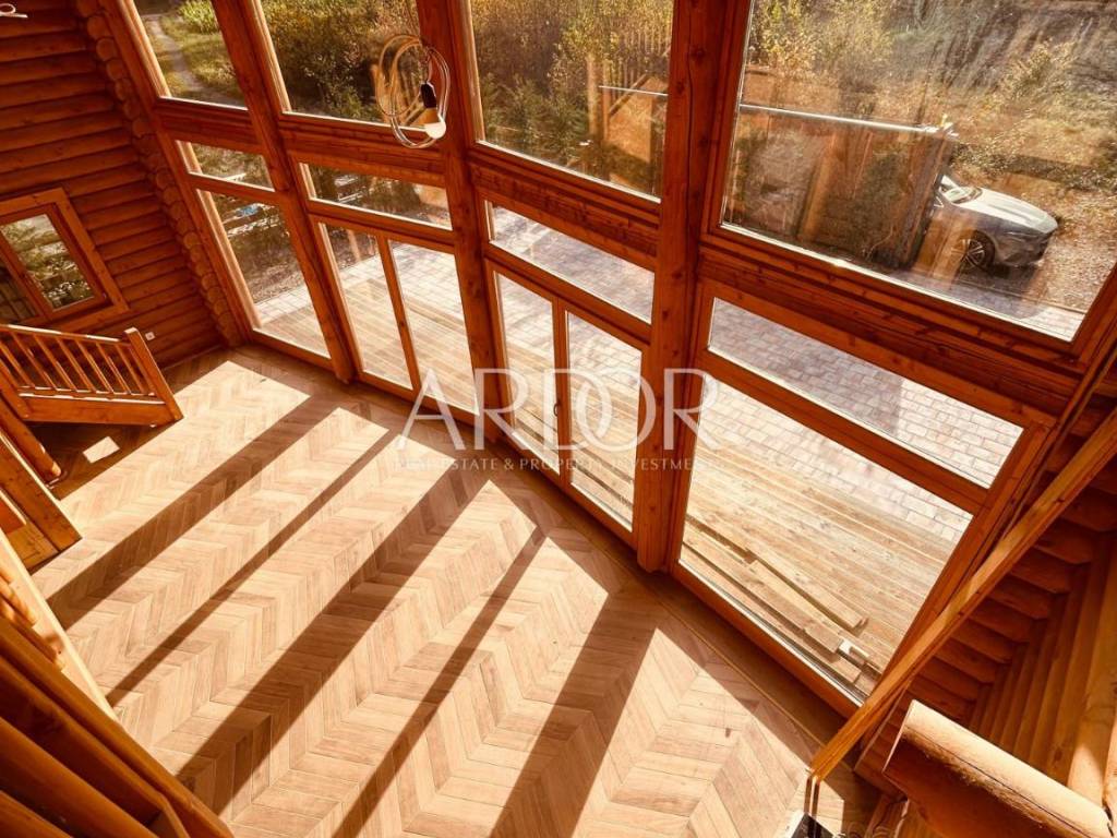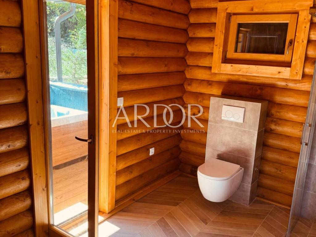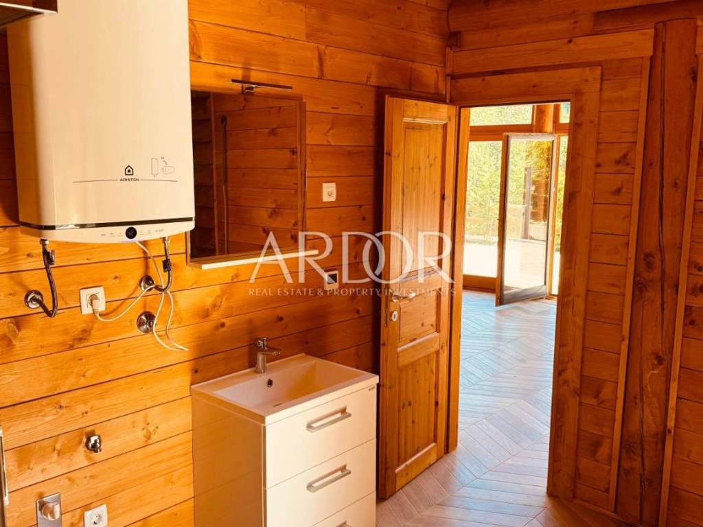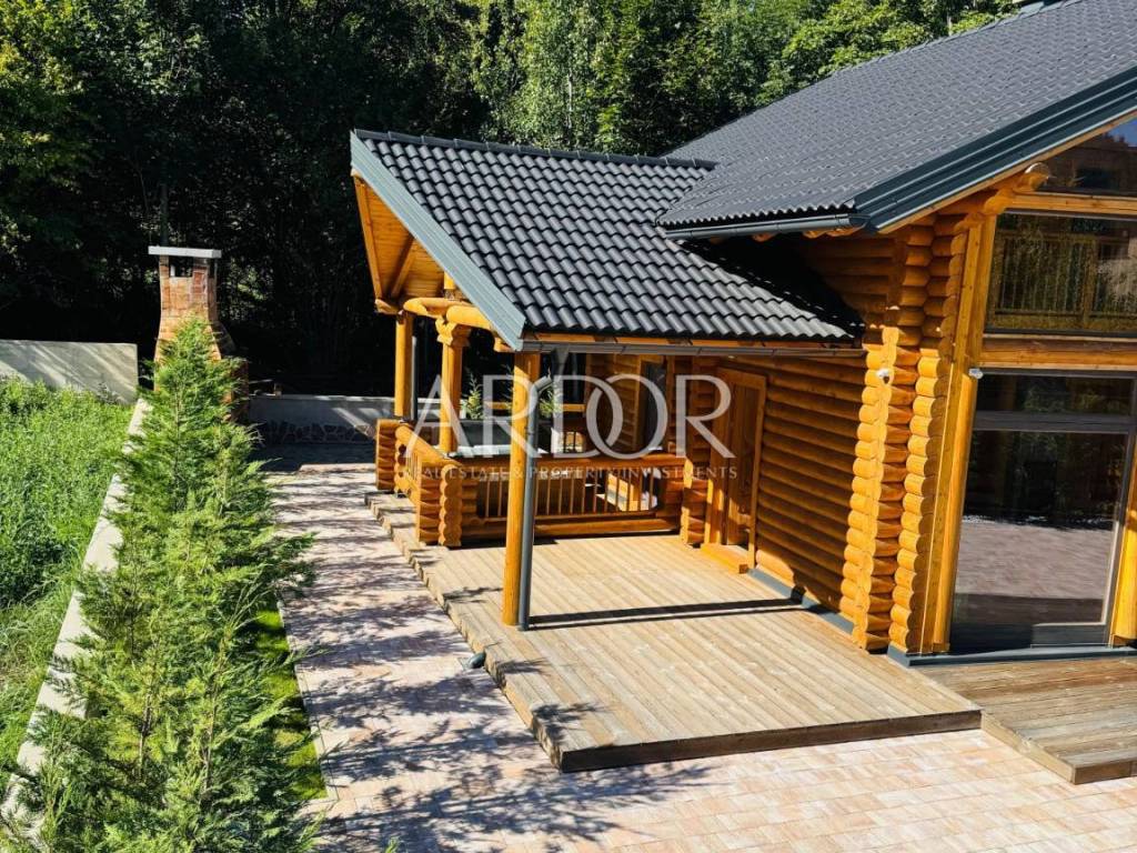 New Build - House Made Entirely from Machine-Processed Logs with a Diameter of 23 cm. The house is situated in a highly attractive location in Fužine, near Lake Bajer and Lake Lepenica.