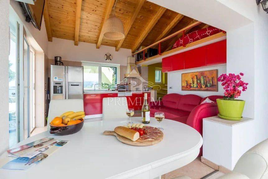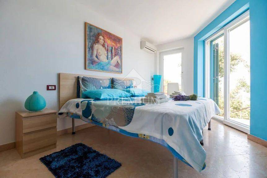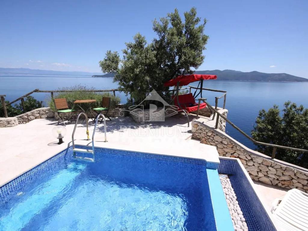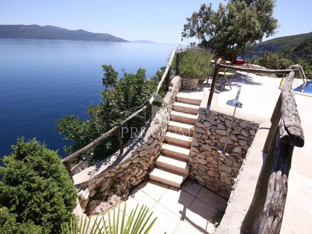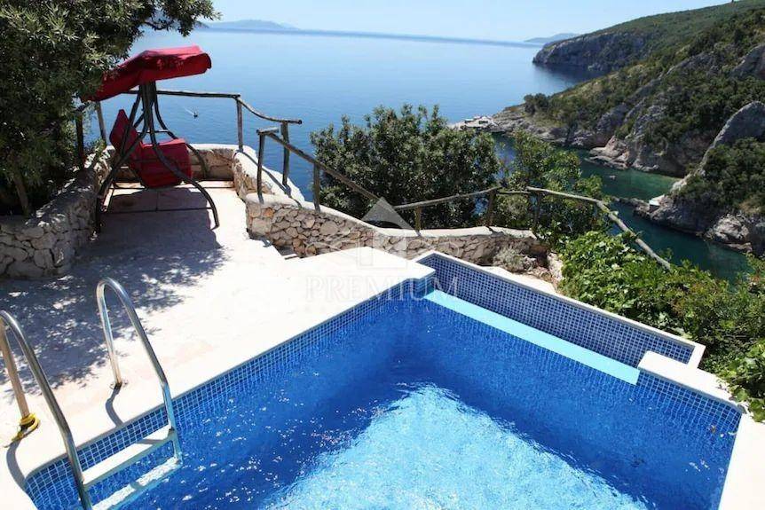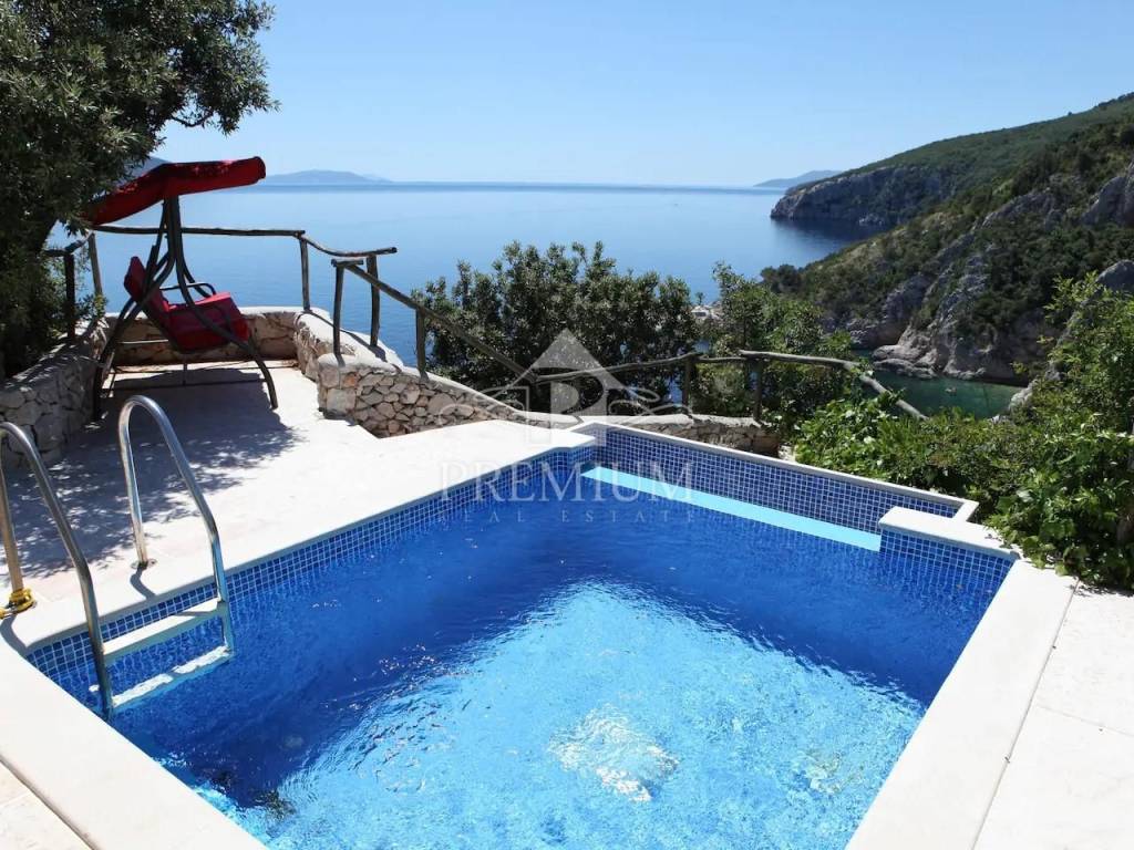This exclusive house is located on the very ridge above one of the most beautiful natural beaches in the northern Adriatic and has a fantastic view of Veli Vrata, the islands of Cres, Krk and the entire Kvarner. This property, which is truly rare in the offer, is adorned with precisely that unique view that is the right address for true hedonists and sea lovers. The beach is less than 100 m away, and the house also has a swimming pool and two parking spaces.