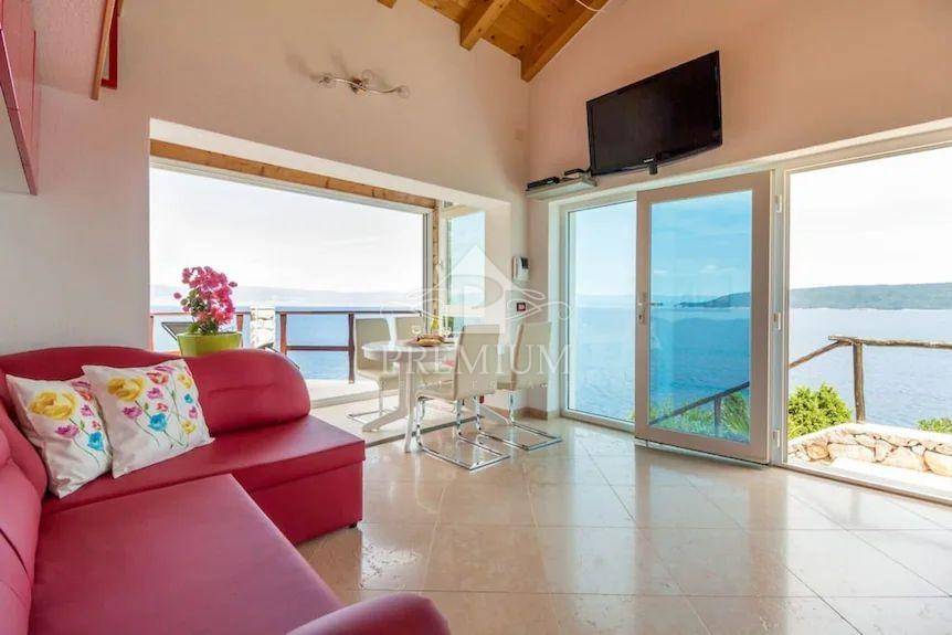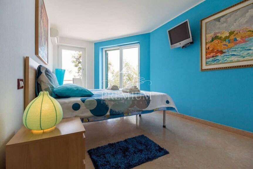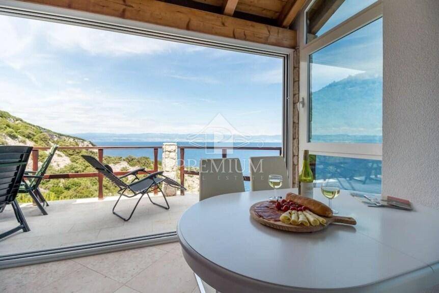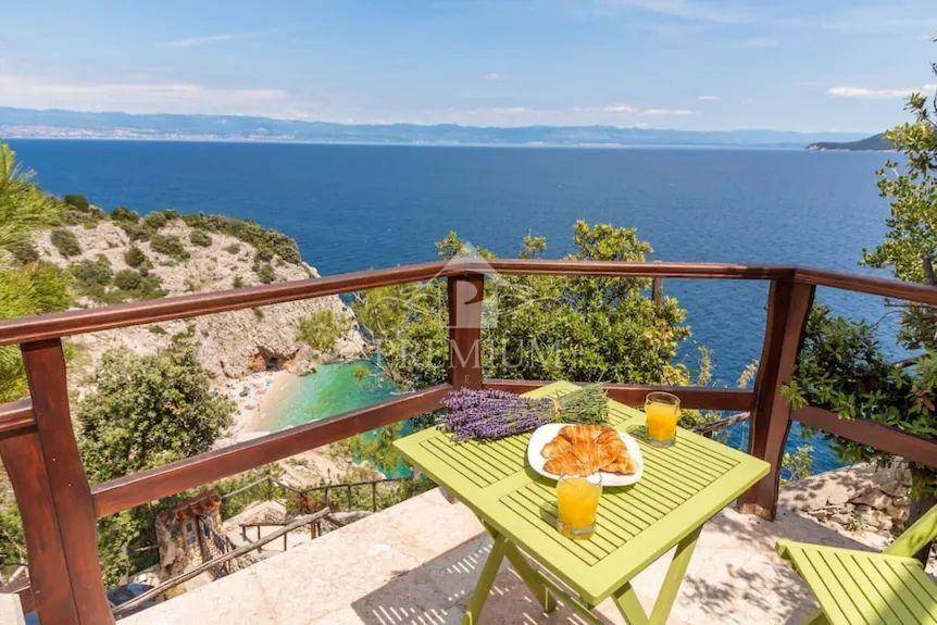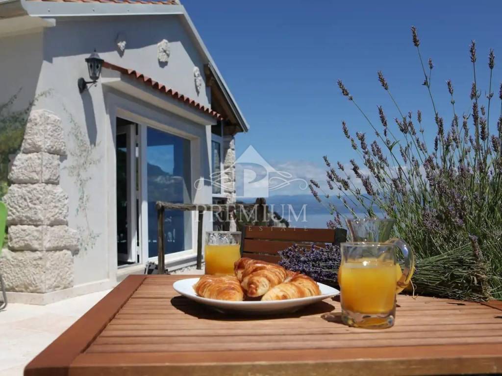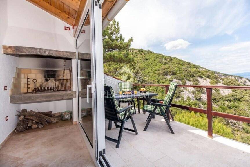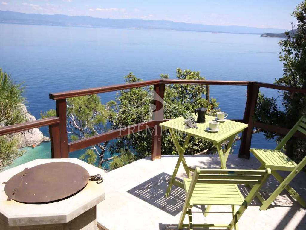 This exclusive house is located on the very ridge above one of the most beautiful natural beaches in the northern Adriatic and has a fantastic view of Veli Vrata, the islands of Cres, Krk and the entire Kvarner. This property, which is truly rare in the offer, is adorned with precisely that unique view that is the right address for true hedonists and sea lovers. The beach is less than 100 m away, and the house also has a swimming pool and two parking spaces.