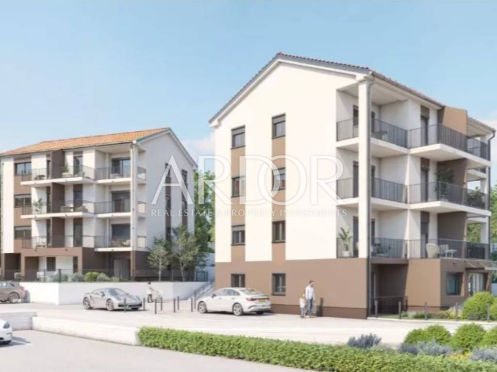 For sale: a modern one-bedroom apartment with living room (1BR+LR) in the NEW residential complex, building EAST, in Viškovo. The apartment is located on the first floor of a contemporary building that is part of a residential complex under construction, consisting of three buildings.