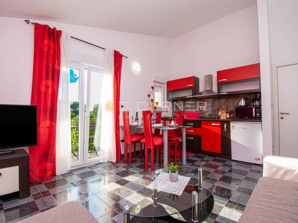 All apartments are equipped with external PVC joinery and shutters, internal wooden joinery, inverter air conditioners, fully equipped kitchens, and quality ceramic tile flooring. The first phase of central heating is installed in all apartments; additional radiators and a stove in the boiler room of choice need to be installed. The largest apartment is currently heated with a pellet stove.