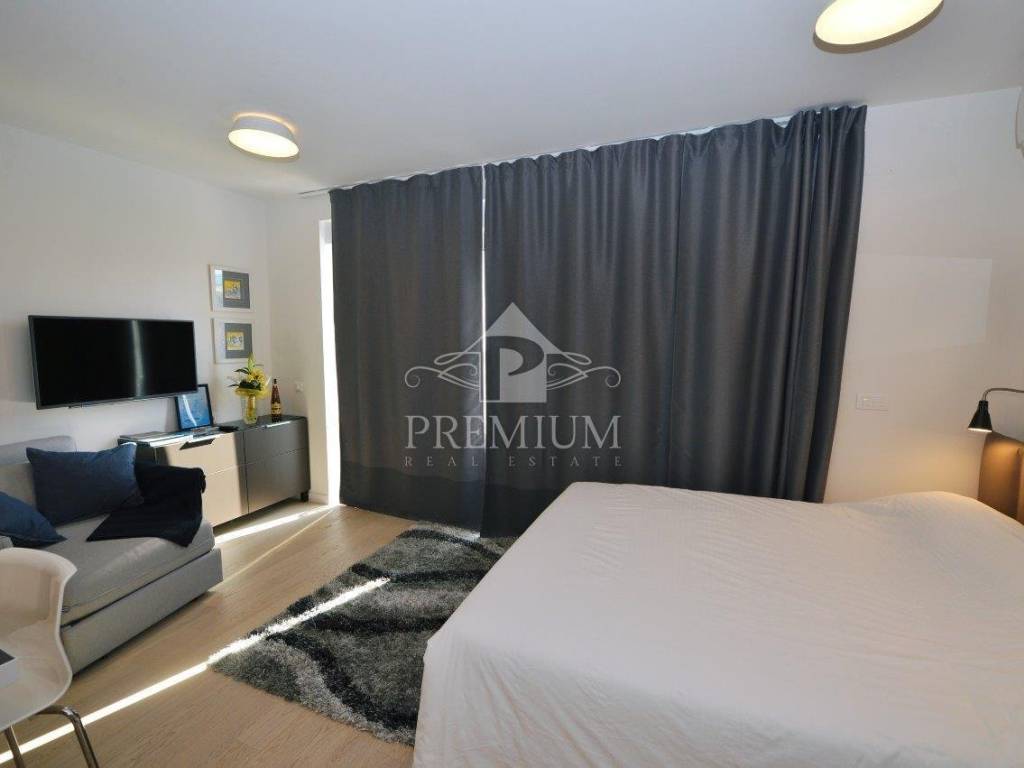 *** EXCLUSIVE STUDIO APARTMENT *** We offer a modern and functionally decorated and equipped apartment in a new building from 2018, just a few hundred meters from the sports complex on Kantrida and tennis courts. The city center is merely 4.5 km away The apartment is a studio type, has an indoor living area of 26 m2 and a partially covered terrace has over 10 m2. The apartment has one parking space in a specially fenced private parking lot (video surveillance). It is equipped with absolutely all the necessary devices and equipment for the needs of a modern businessman (athlete), ideal for one to two people. View of Kvarner, quiet location, civilized environment and neighbors. Free WiFi